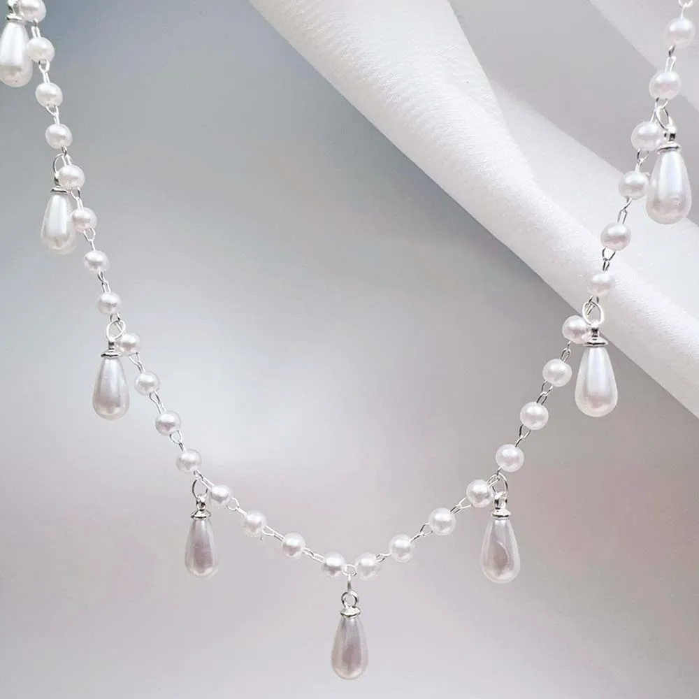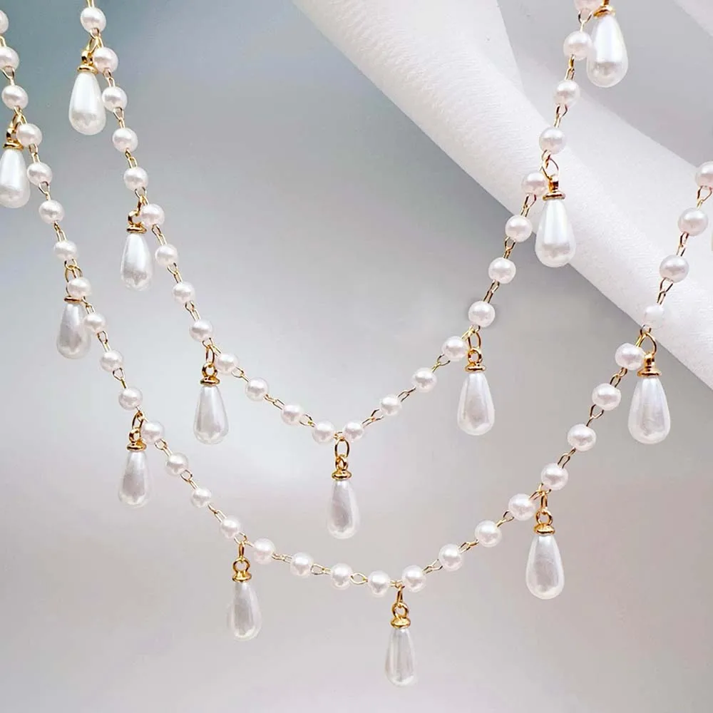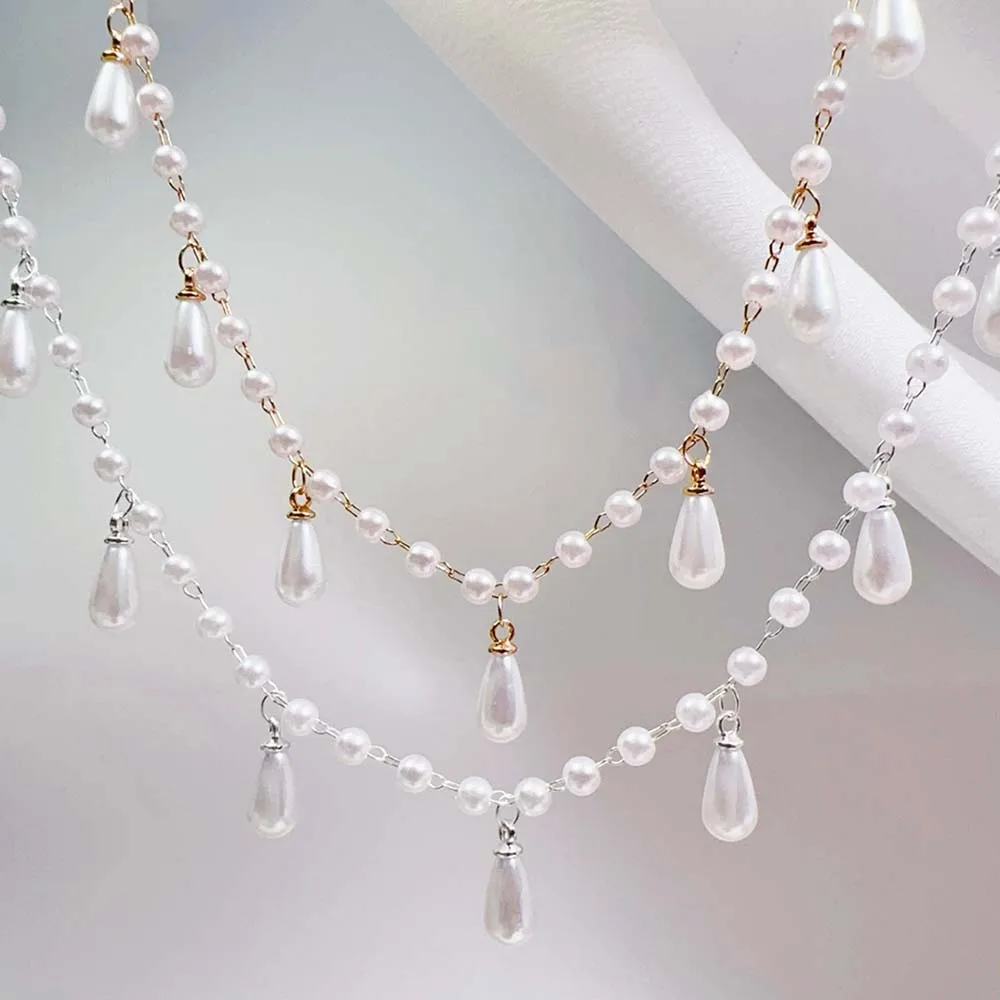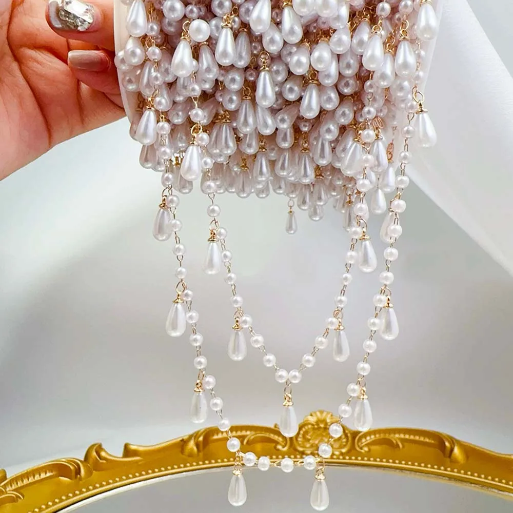 0.5M 1M Imitation Pearl Waterdrop Charm Beaded Chain Plastic White Ball Beads Copper Chains Necklace Cloth DIY Body Chain Jewelry Making