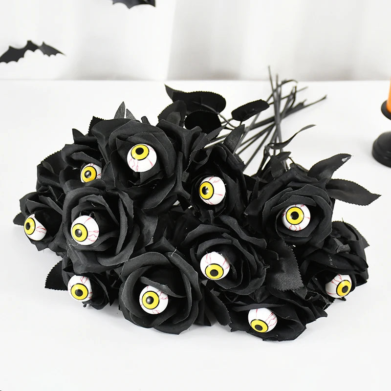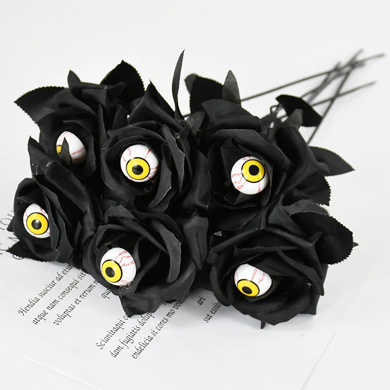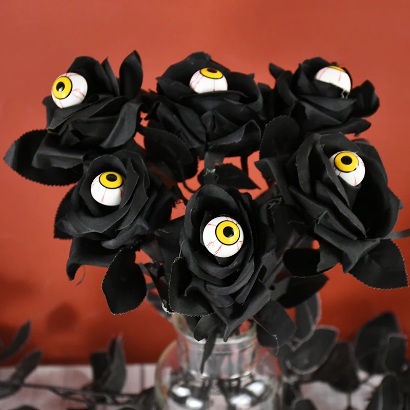 1/5Pcs Halloween Flowers Artificial Black Rose With Eyeball For Halloween Home Decoration Party Horror Props DIY Bouquets Craft