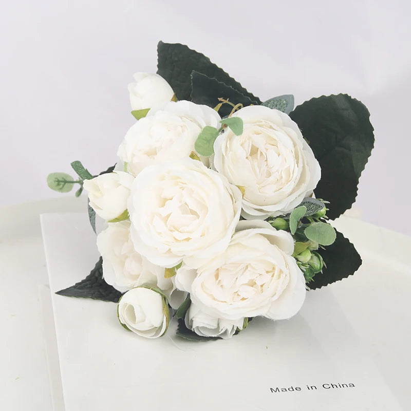 1 Bouquet 9 heads Artificial Flowers Peony Tea Rose Autumn Silk Fake Flowers for DIY Living Room Home Garden Wedding Decoration