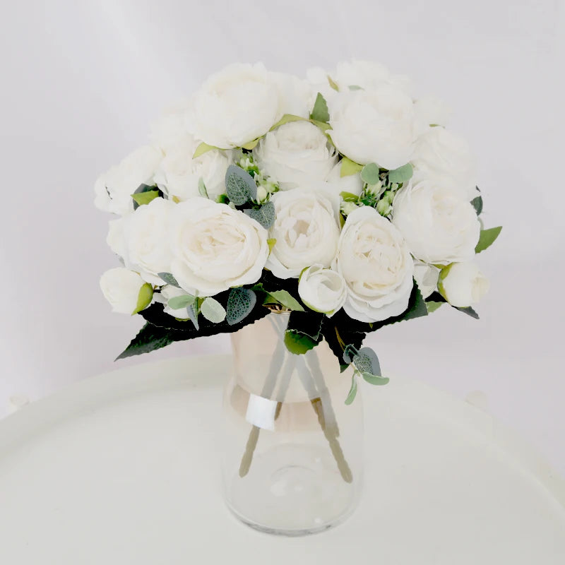 1 Bouquet 9 head Artificial Flowers Peony Tea Rose Camellia Silk Fake Flower for DIY Living Room Home Garden Wedding Decoration