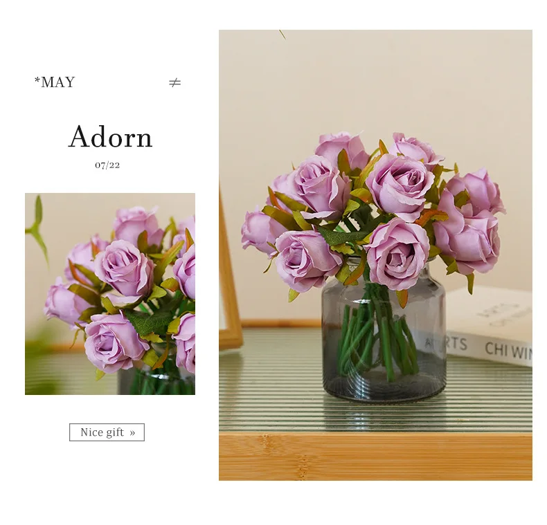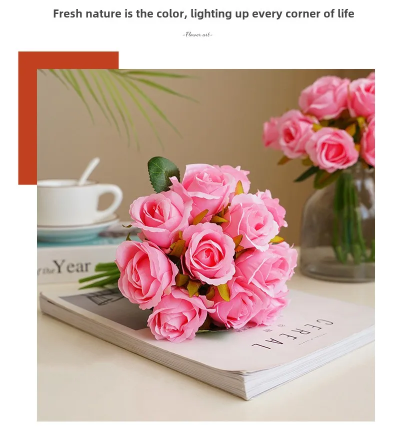 10 Inch Artificial Rose Bridal Bouquet Wedding Handheld Flowers Home Decor Floral Arrangement