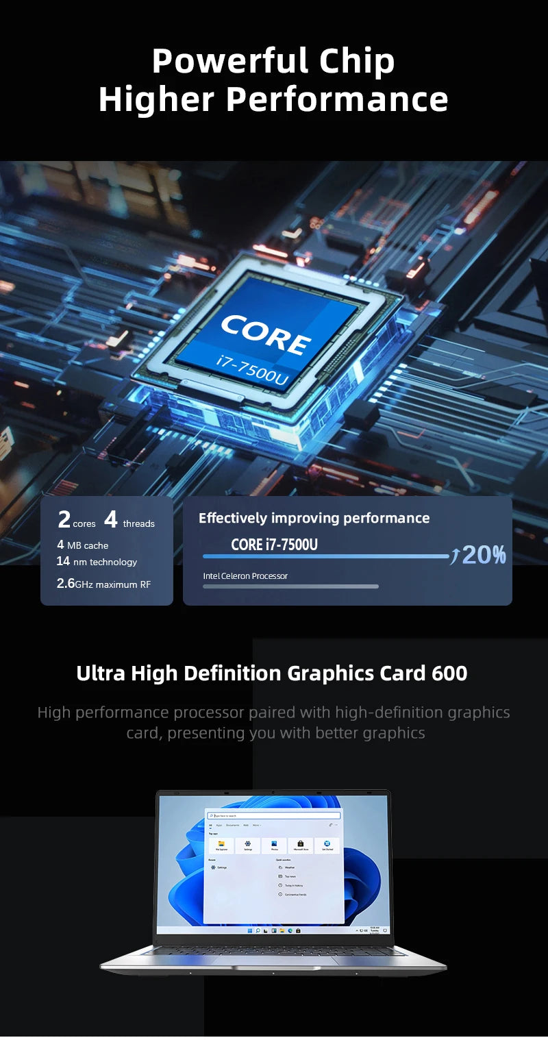 14.1 inch Laptop Computer Portable Windows 11 Pro Core i7-7500U Notebook 12GB RAM 1TB 2TB SSD Office Study Laptops