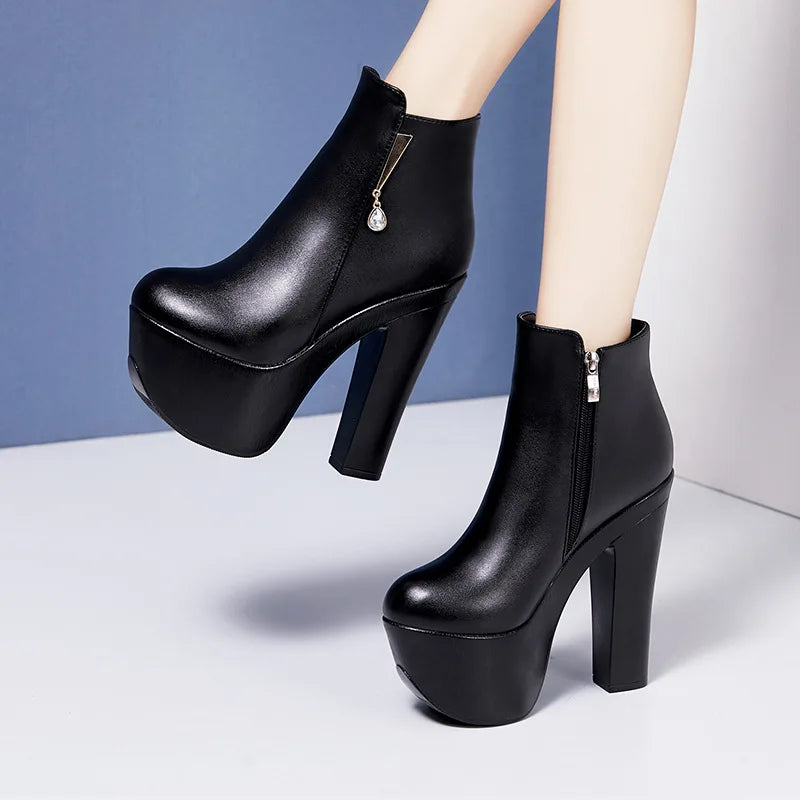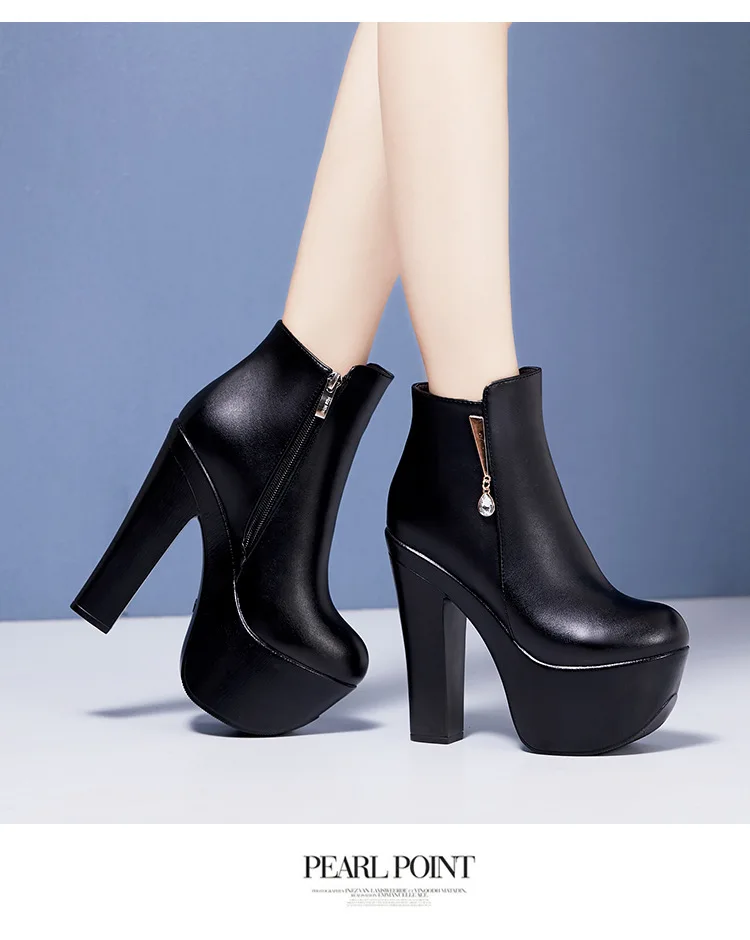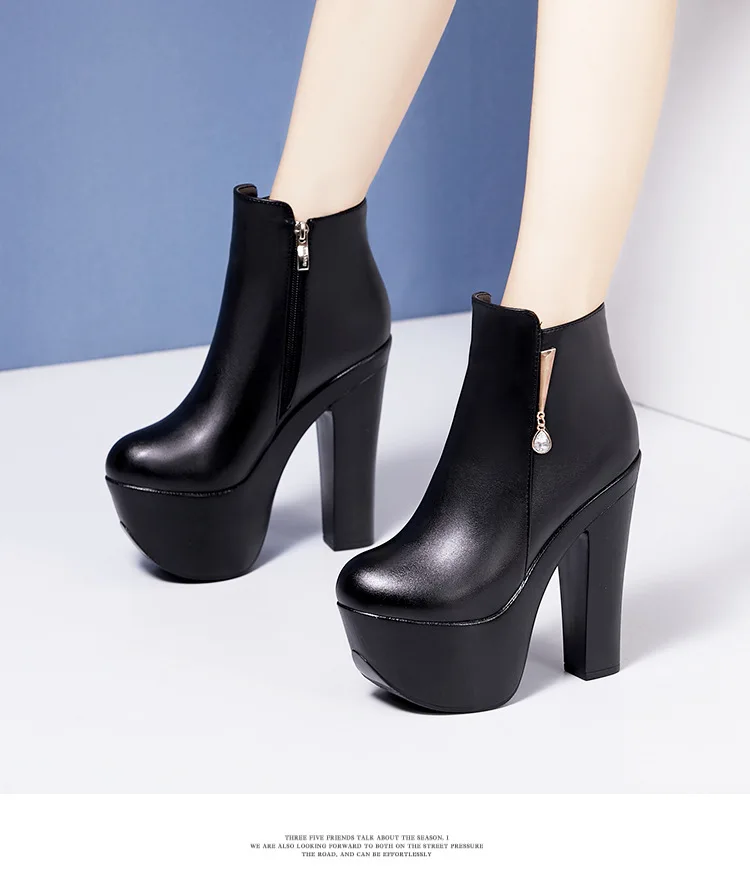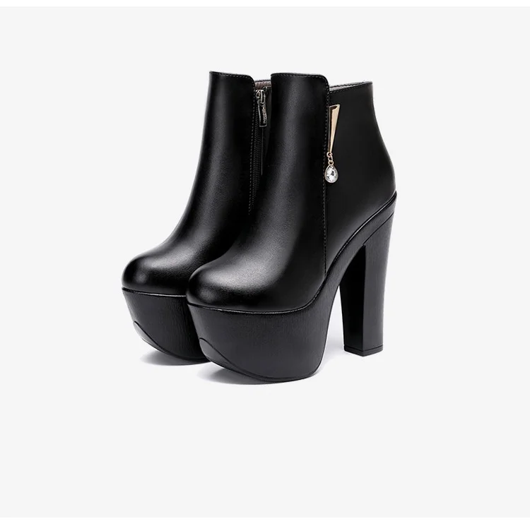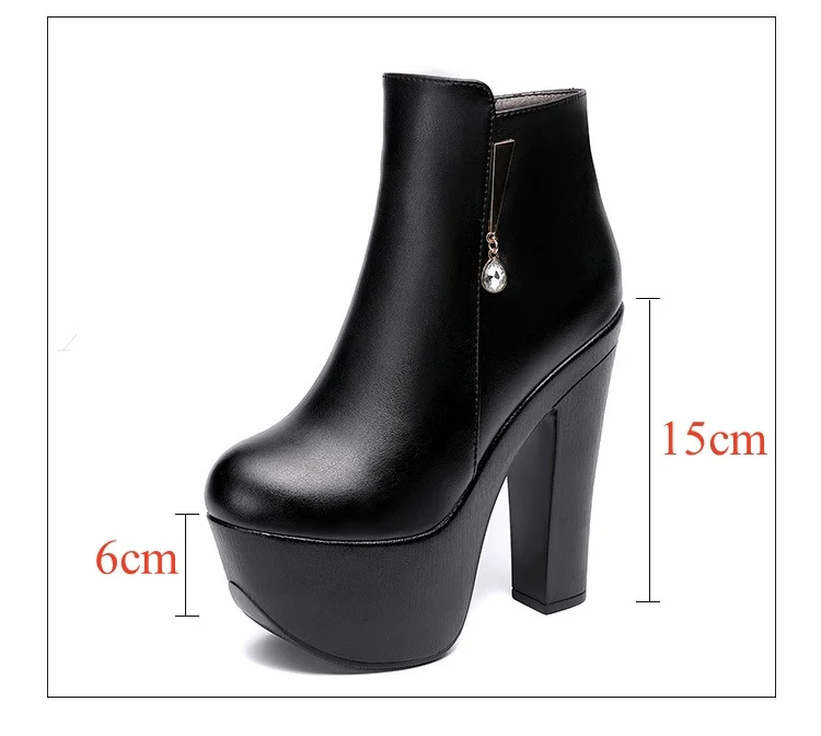 15cm Small Size 32-43 Sexy Extreme Block High Heels Shoes Women Boots Winter 2025 Thick Platform Boots Ankle Botas Model Office