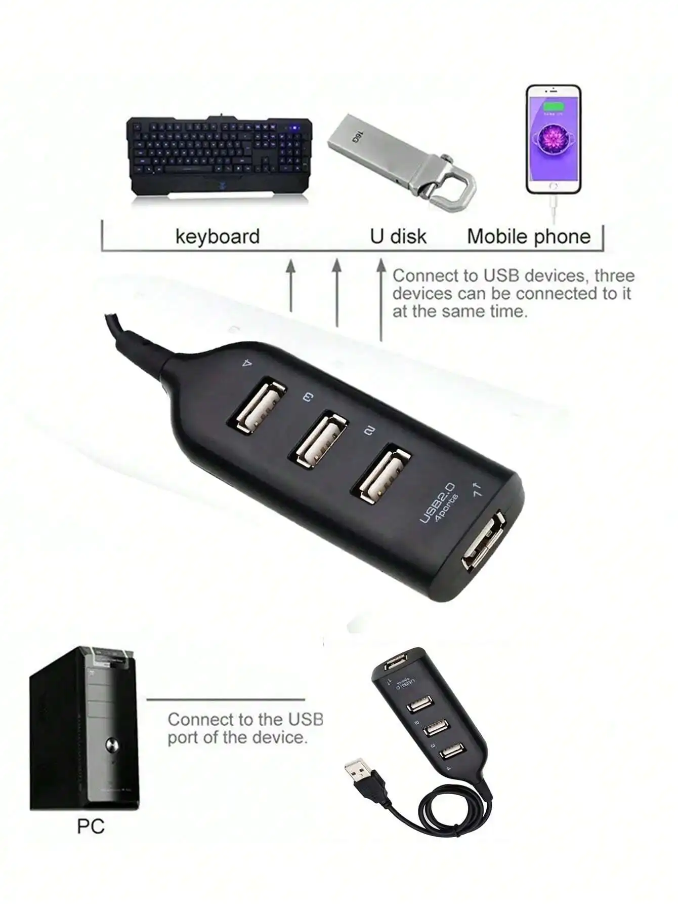 1. Stay connected with ease using this sleek and compact White USB 4-Port Hub Expander. Perfect for expanding your computer's USB ports, this accessory is essential for any tech-savvy individual.