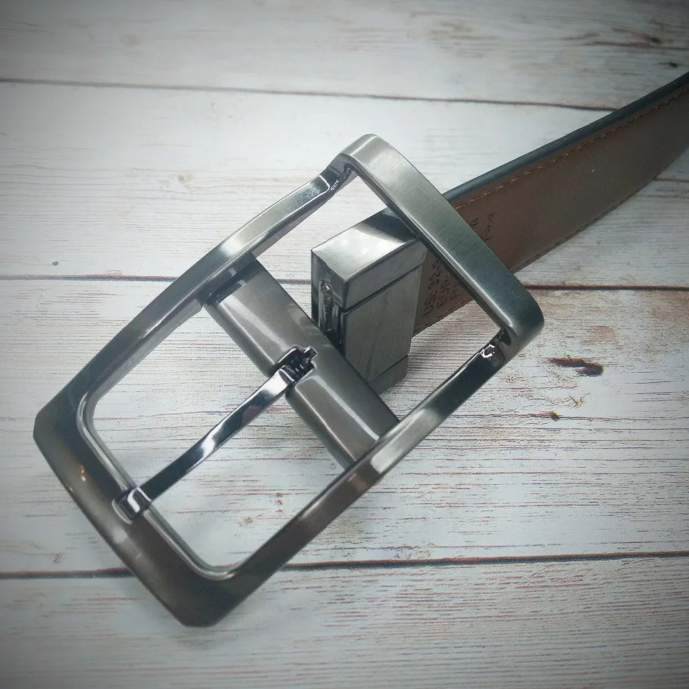 1Pcs Men's Genuine Leather Reversible Belt Rotated Buckle Two In One Big And Tall