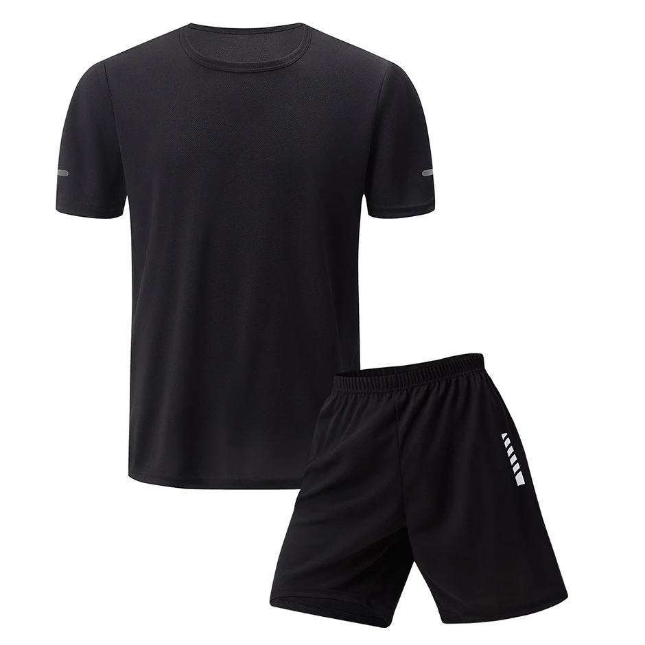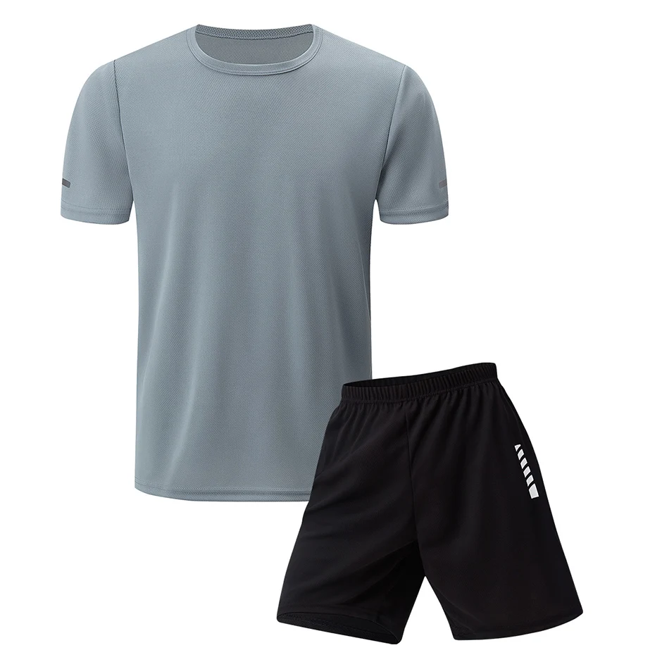 2 Pack European and American Size MEN'S Short-sleeved Shorts Suit MEN'S Casual T-shirt Suit Joker Running Fitness Two-piece Suit