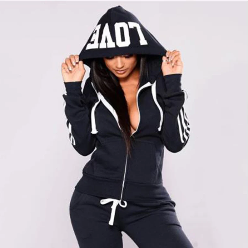 2023 Women's Sports Set Three Stripe Sweater Two Piece Jogging Set Casual Zip Hoodie+Sports Pants Sports Shirt Jogging Set