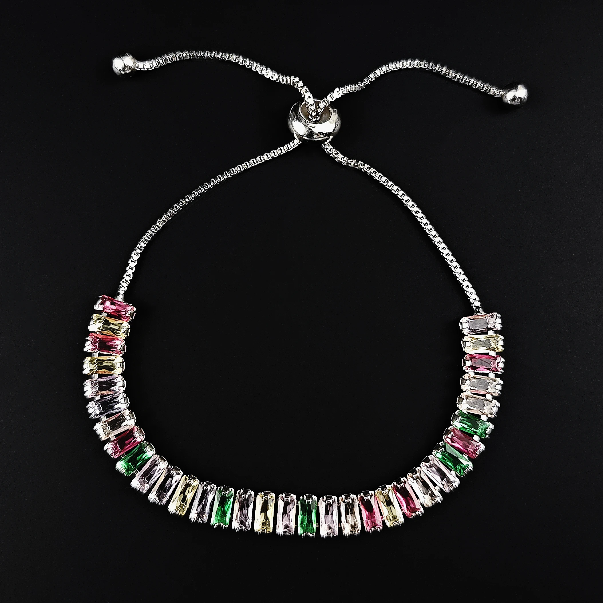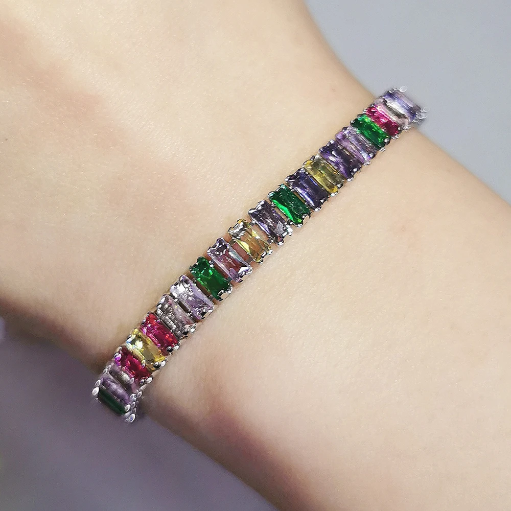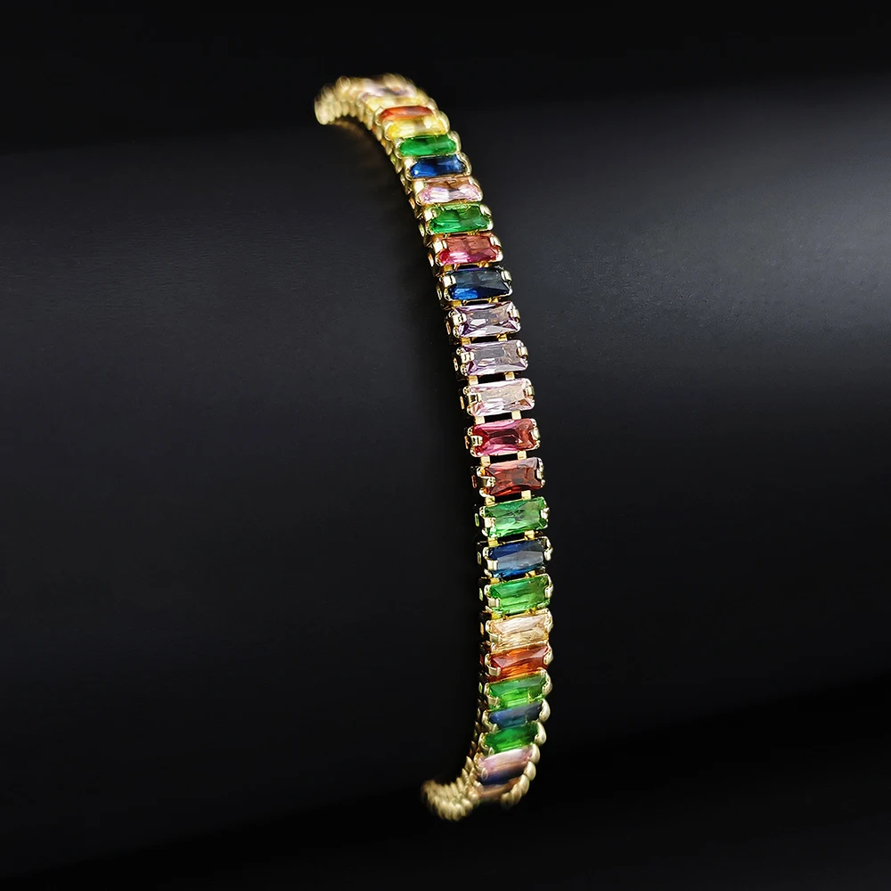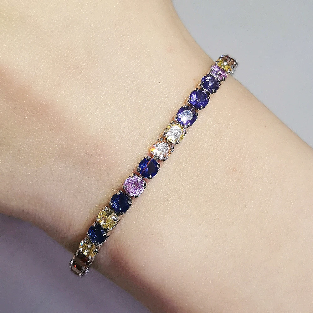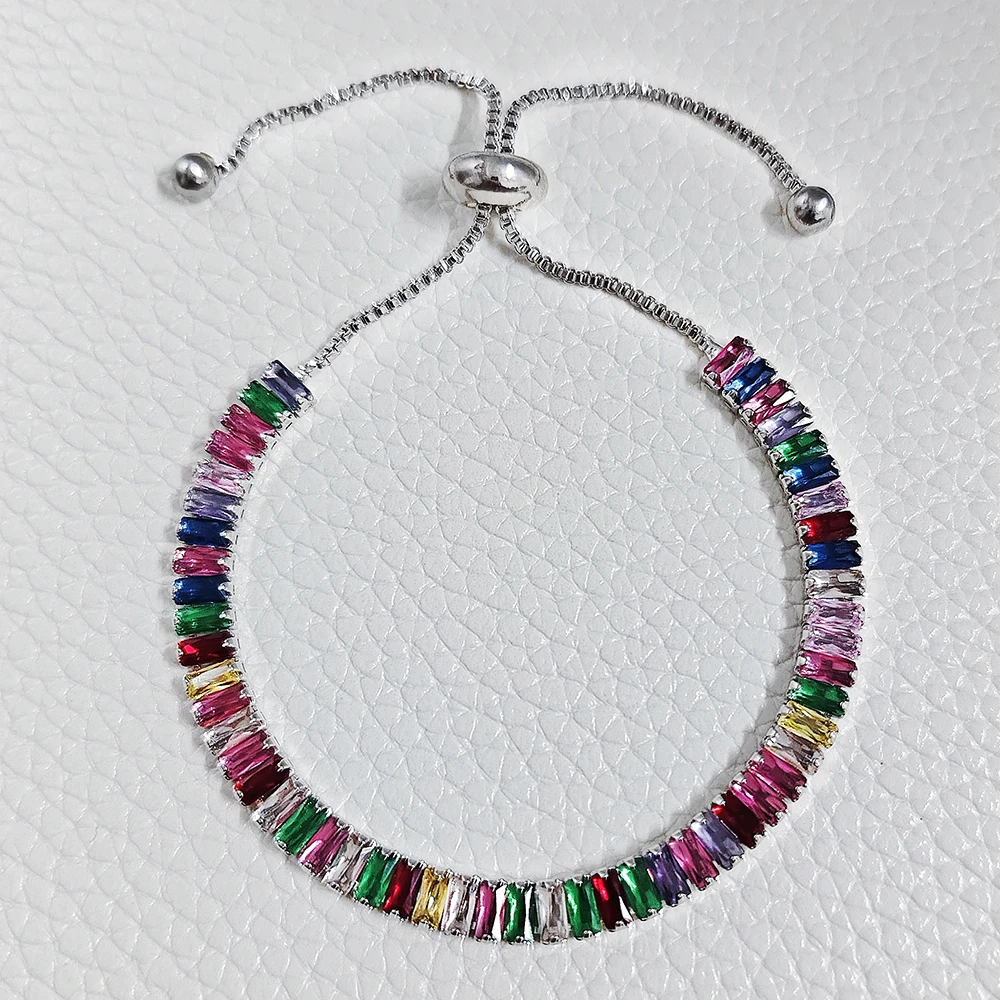 2024 New Arrival Colorful Rose Gold Silver Color Tennis Bracelet Adjustable for Women Party Gift Jewelry Wholesale S7193