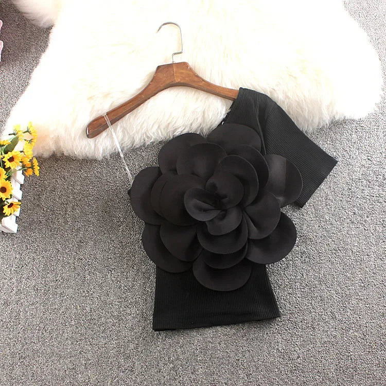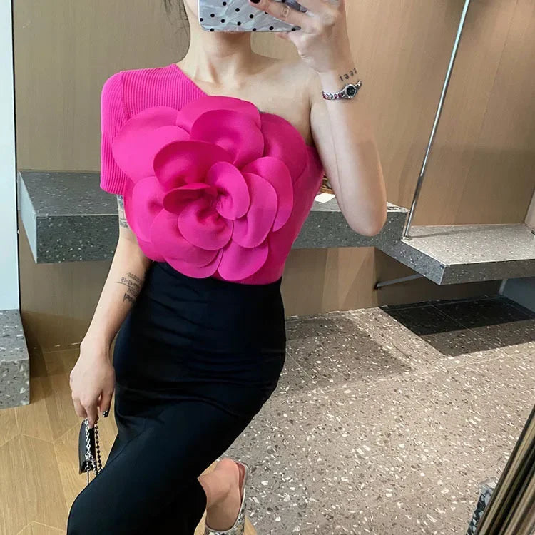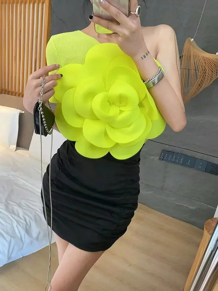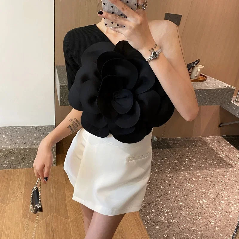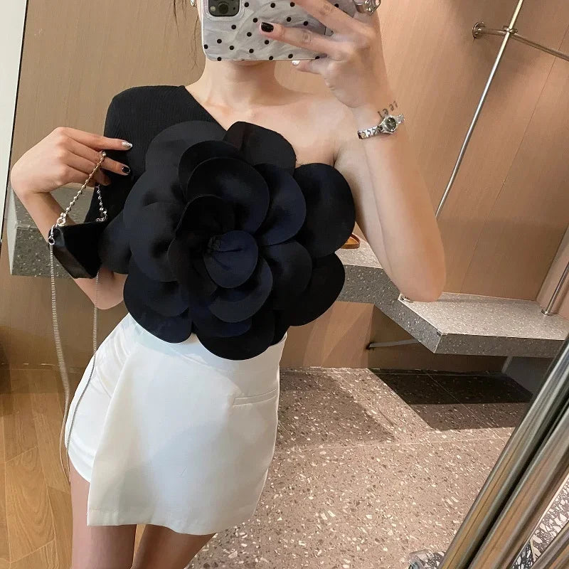 2024 New Summer Vest Women Three-dimensional Flowers Patchwork Slim Off-shoulder Backless Sleeveless Suspender Female