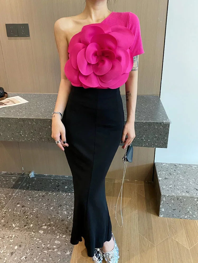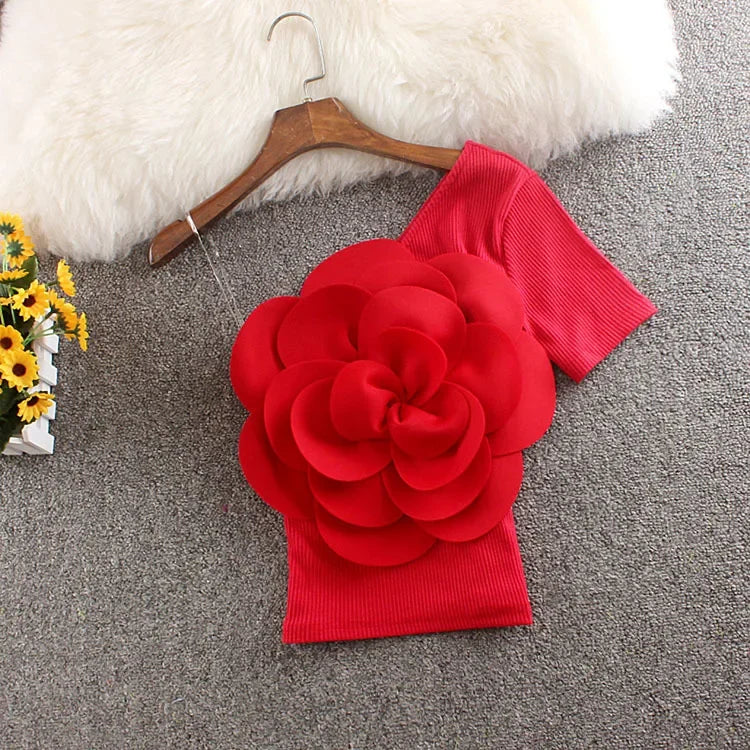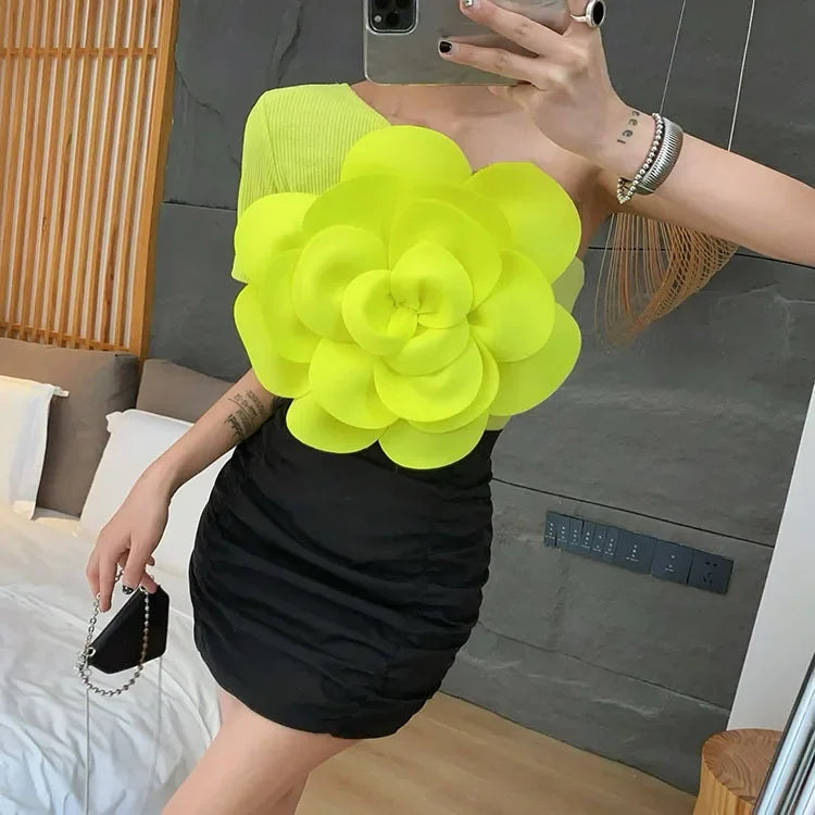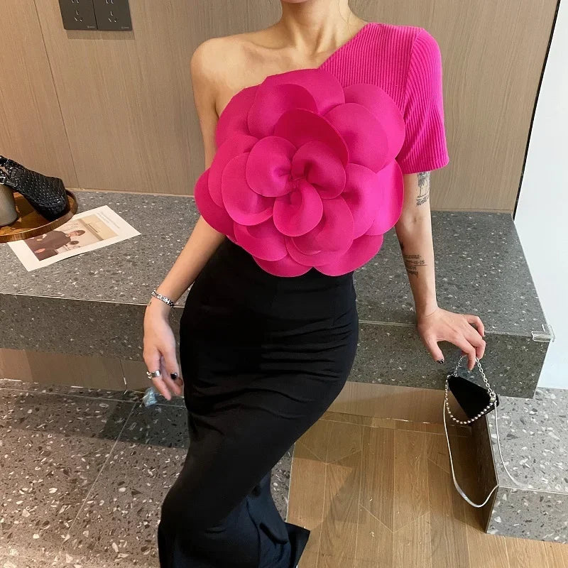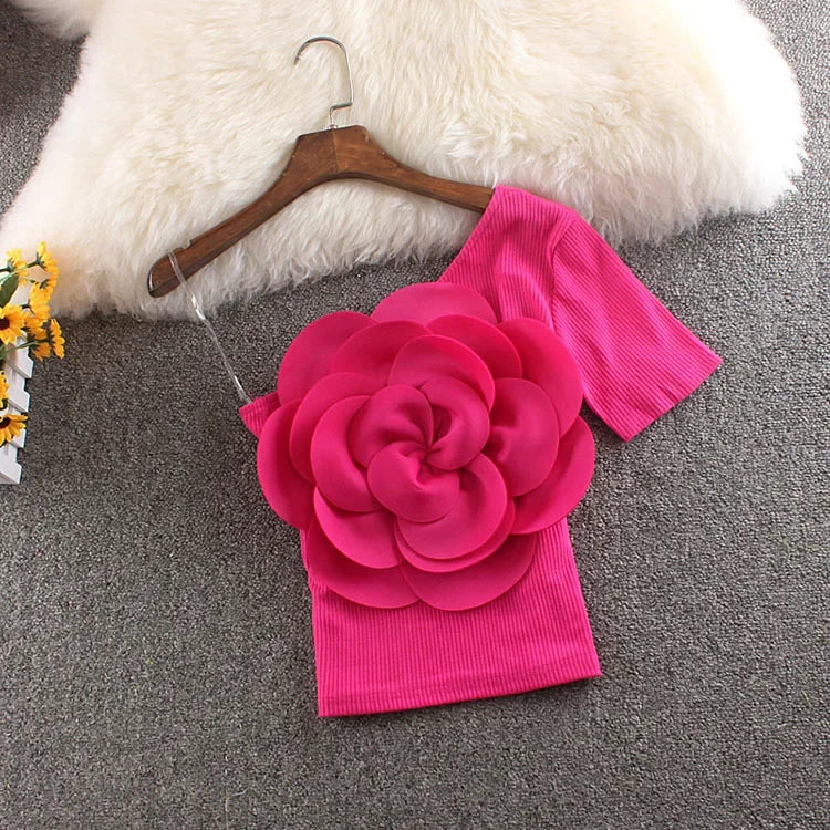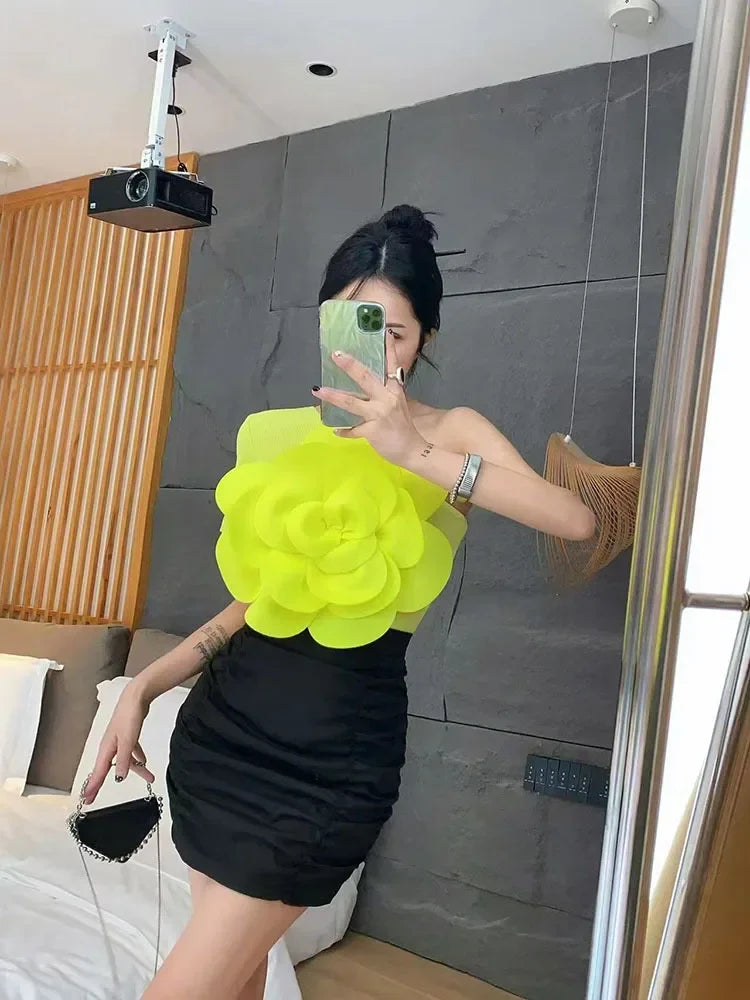 2024 New Summer Vest Women Three-dimensional Flowers Patchwork Slim Off-shoulder Backless Sleeveless Suspender Female