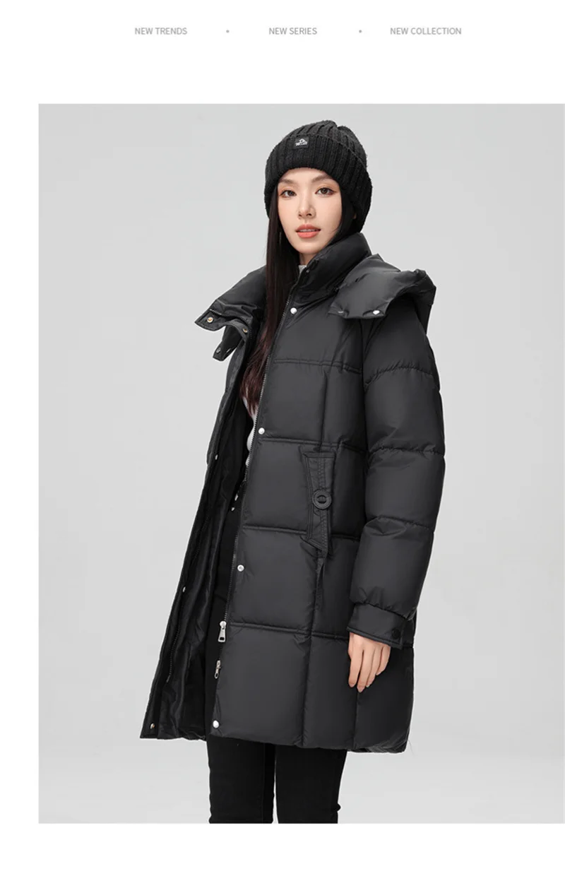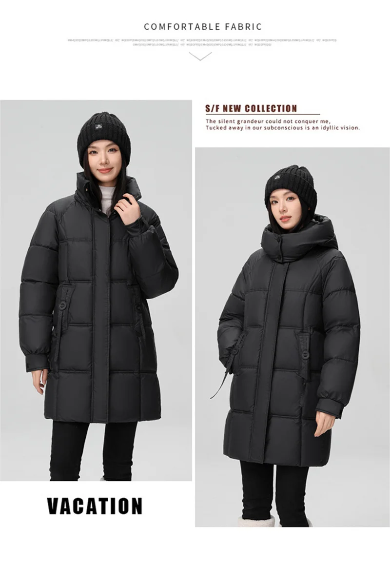 2024 New Winter Women Jacket Mid Long Hooded Parka Cotton Padded Jacket Female Parkas Loose Casual Warm Outwear Snow Wear Coats