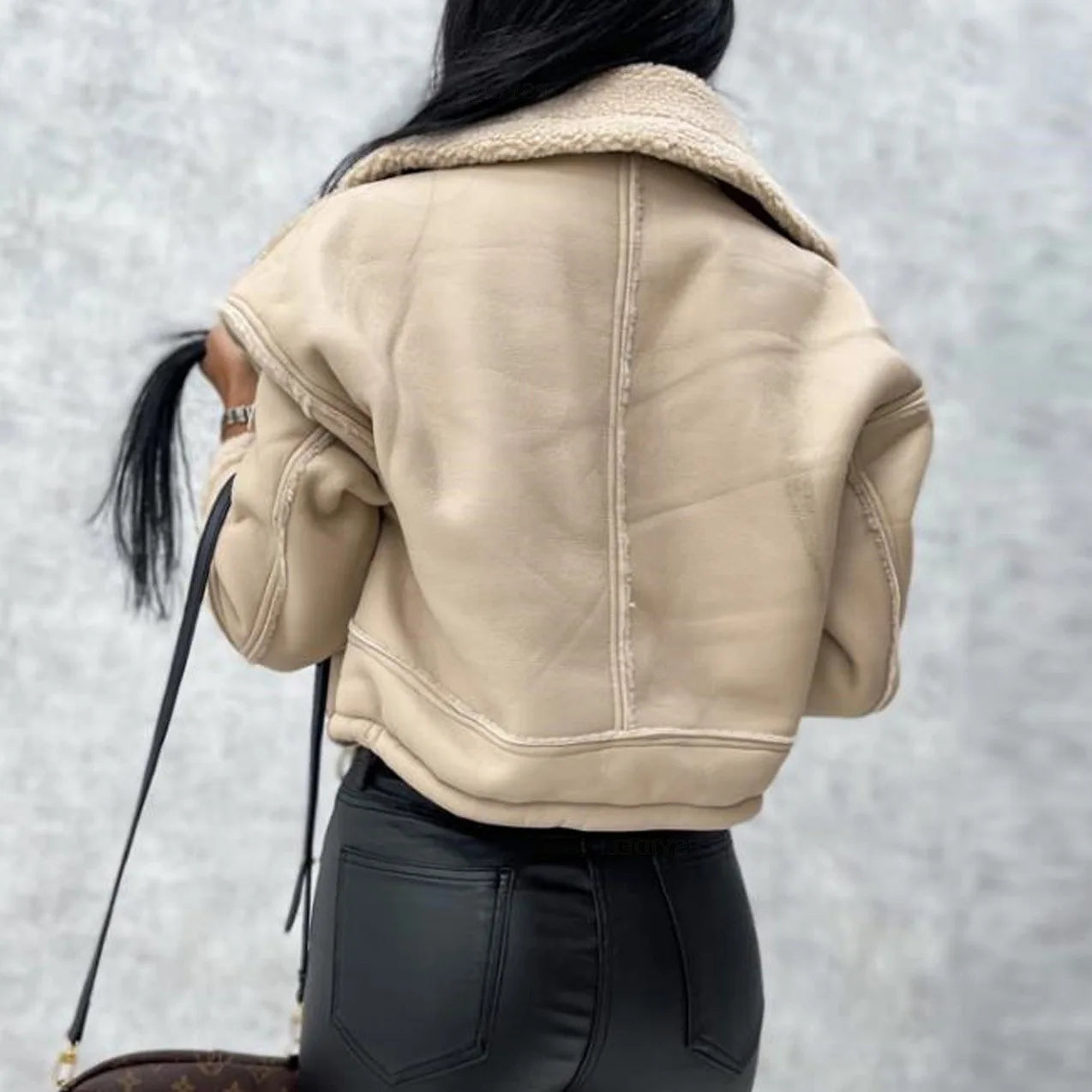 2025 Autumn Winter Women's Jacket New Fashion Lamb Fur Splicing Short Coat Zipper Motorcycle PU Leather Jacket Tops Female
