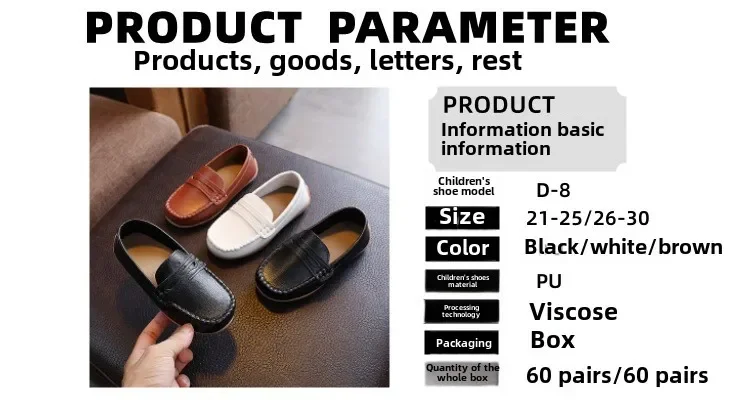 2025 Boys' Slip-On Oxford Loafers Spring Autumn Soft PU Leather Toddler Shoes Black White School Uniform Shoes for Kids