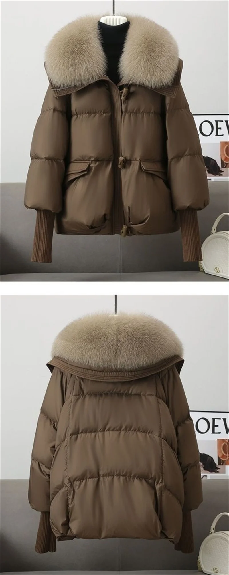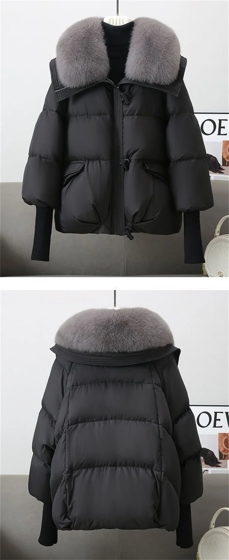 2025 Down Jacket Women Winter Coat New Fashion Warm Thick Short Loose Cotton Splicing Fur Collar Quilted Coat Women Clothing