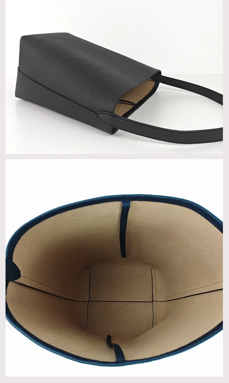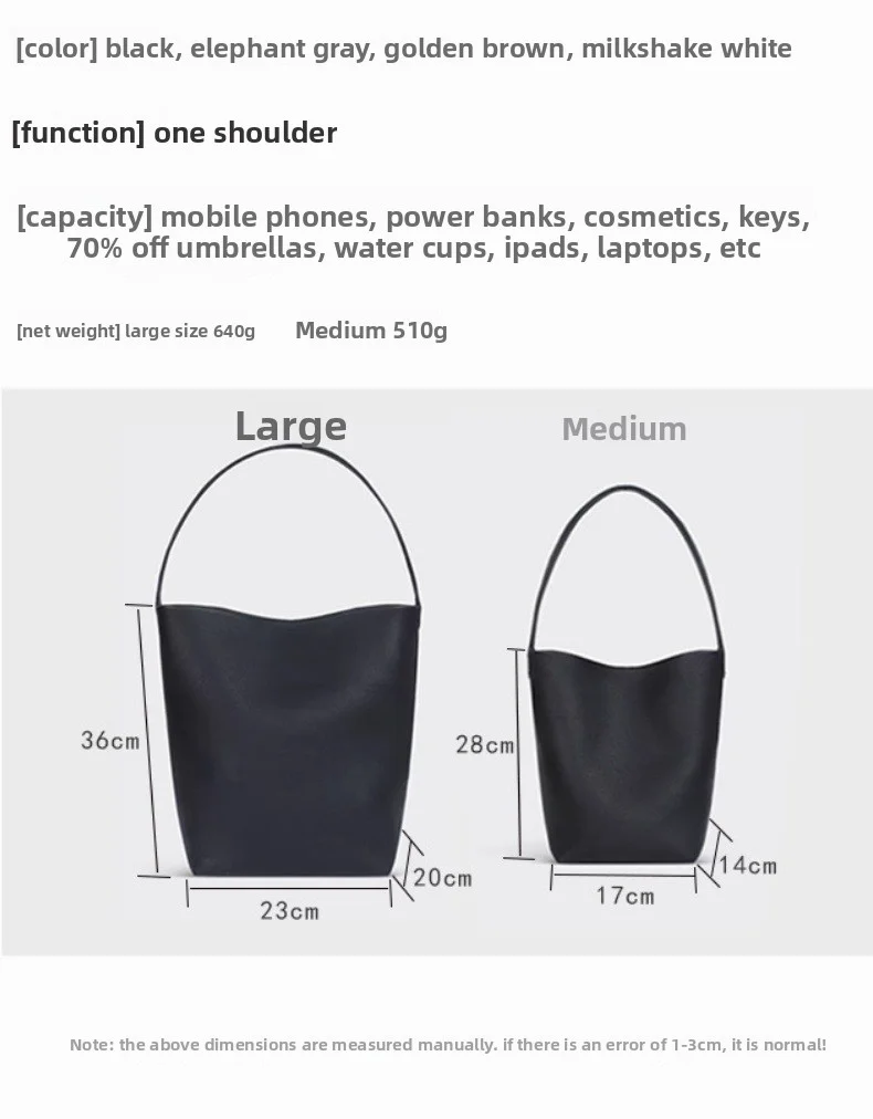 2025 new leather large capacity bucket bag, lychee pattern, cowhide, commuting tote bag, shoulder bag, hand-held women's bag