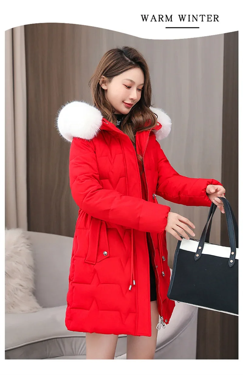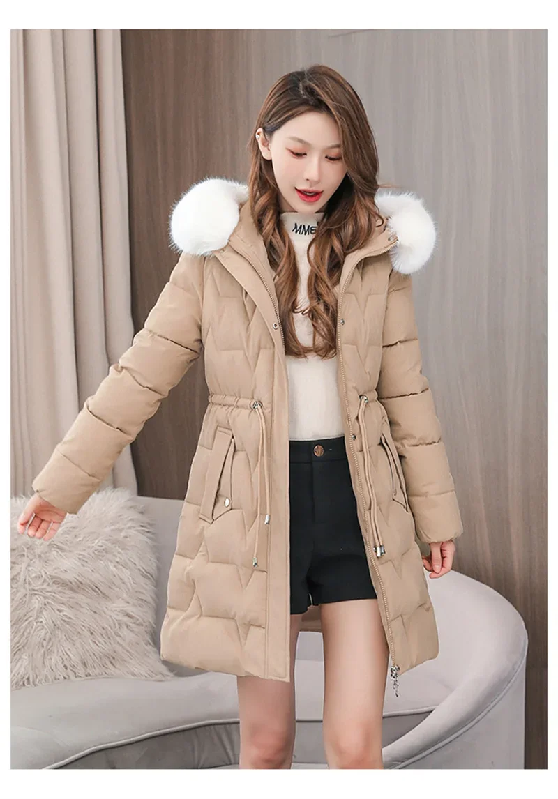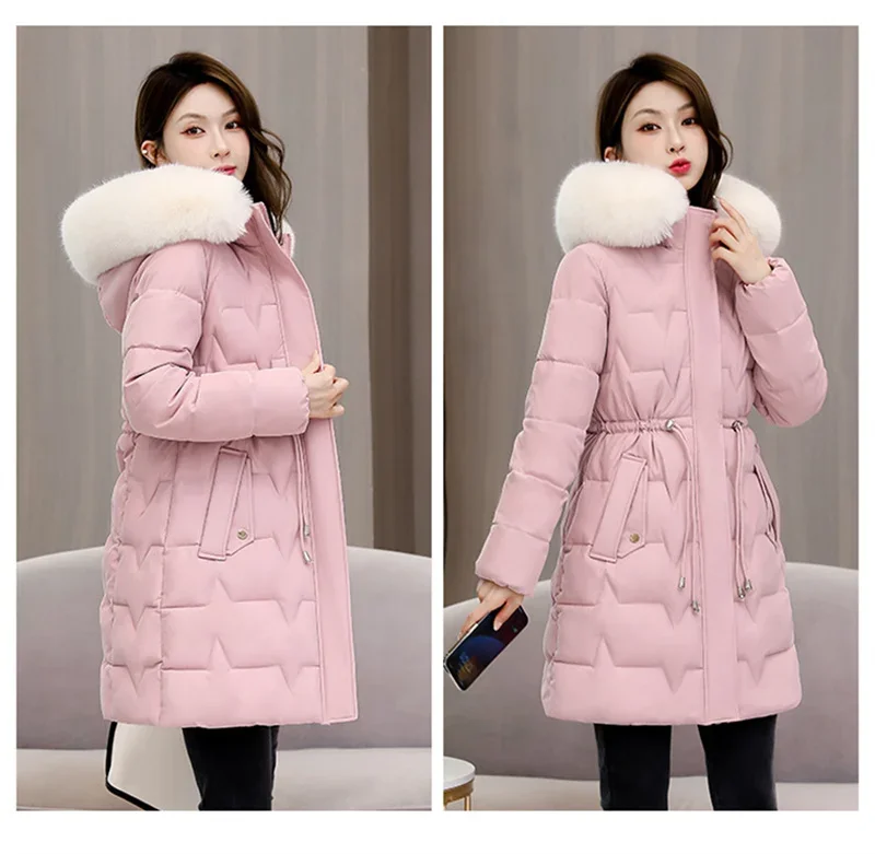 2025 New Winter Women Parka Fur Hooded Jackets Thicken Warm Cotton-padded Puffer Coat Casual Long Parkas Clothes Loose Outerwear