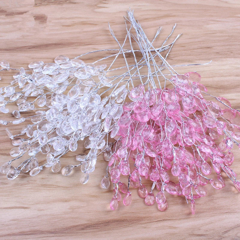 20Pcs Acrylic Flower Branch Artificial Flower Bouquet Crystal Flowers Colorful String Wedding Party Home Craft Decoration Crafts