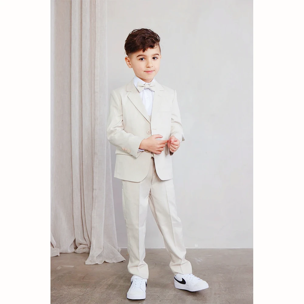 3 Piece Ivory Boys Suit for Wedding Formal Suits Set Notched Lapel Blazer Vest Pants Kids Dress Clothes Outfit 2-18 Years Old
