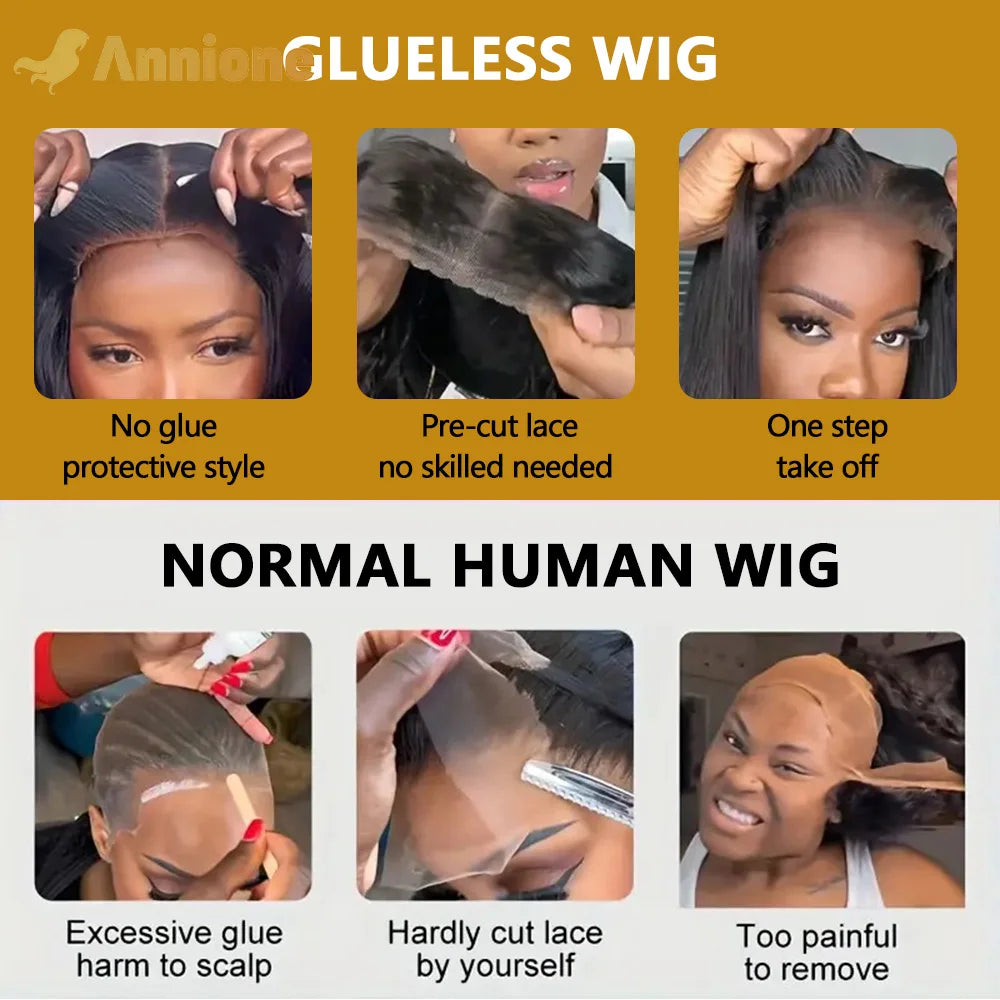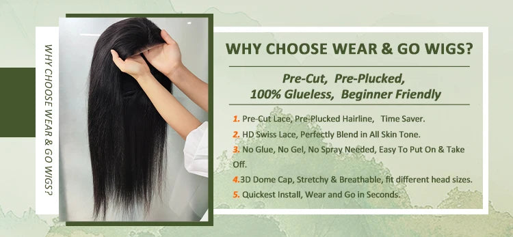 [Premium Quality Human Hair] - wear and go glueless wig is crafted using only the finest, 100% human hair - no synthetic blends. You can style it just like your own natural hair - whether you want to dye it, curl it, straighten it, or any other style you desire.