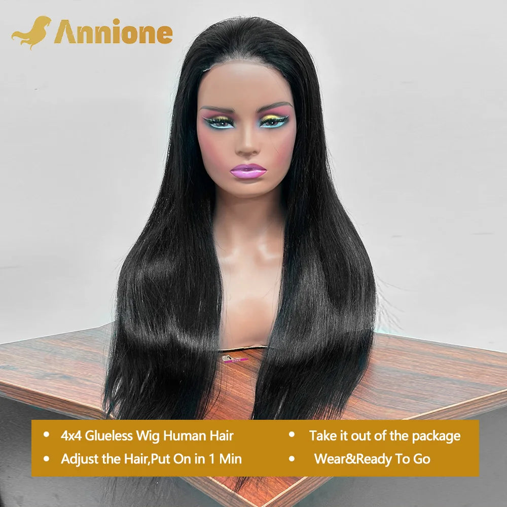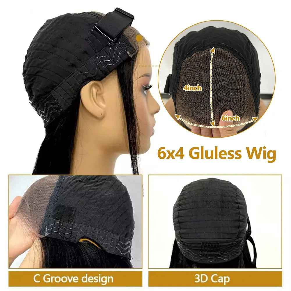 30 inch Glueless Wigs Human Hair Ready To Wear 6X4 Brazilian Straight HD Lace Front Human Hair Wig 100% Human Hair Wigs Glueless