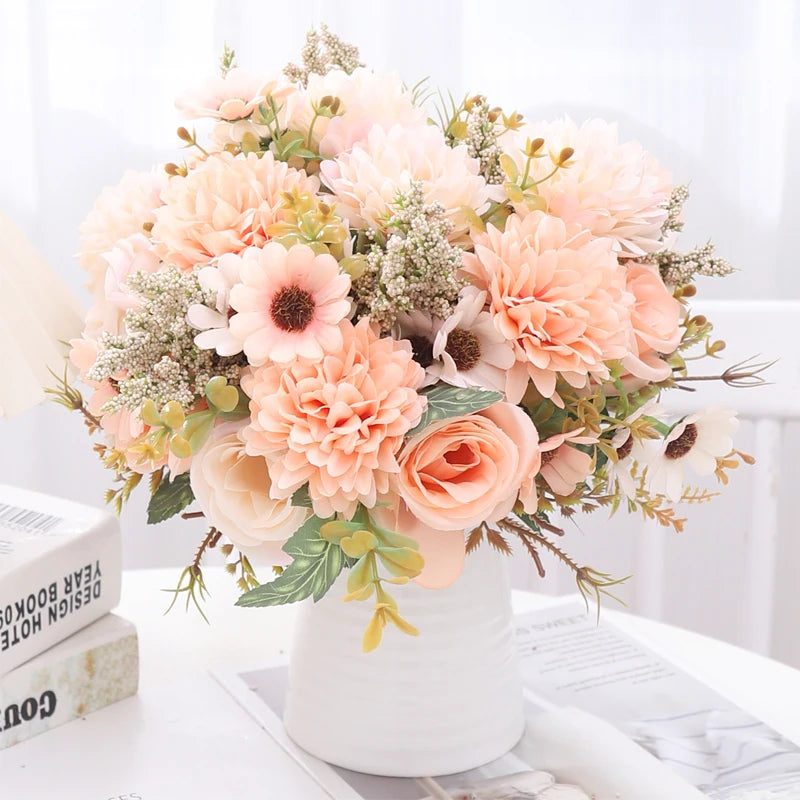 30cm Autumn Artificial Flowers Rose Bride Wedding Christmas Decoration For Vase Home Living Room DIY Fake Bouquet Daisy Plants