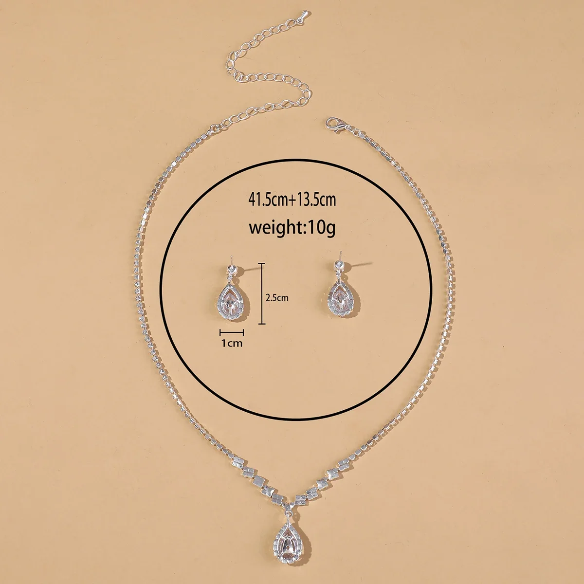 3PC Jewelry Sets Wedding Season Women's Fashion Droplet Necklace and Earring Set Banquet Party Accessories