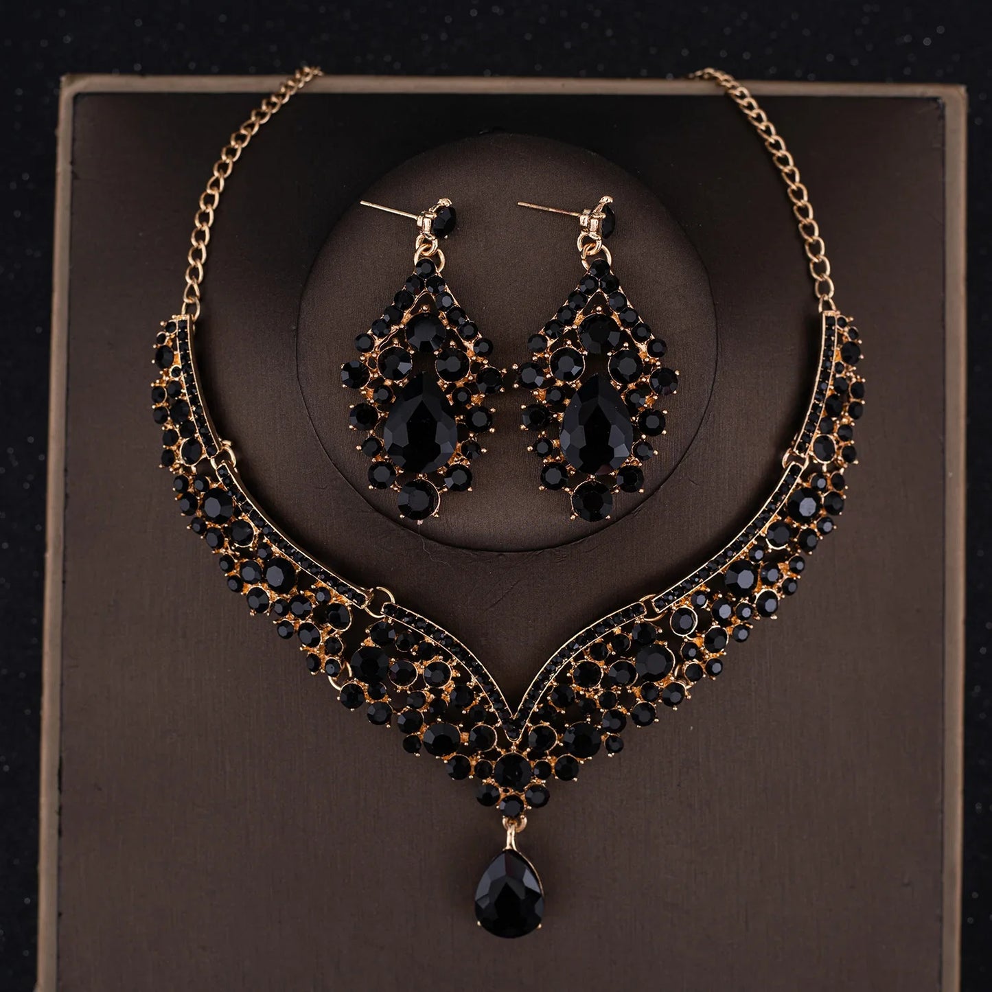3Pcs Crystal Crown Necklace Earring Set Baroque Rhinestone Bridal Jewelry Set Bridal Wedding Hair Accessories Jewelry Crown Gift