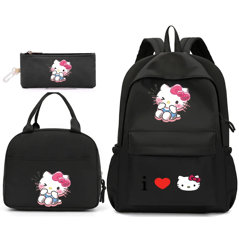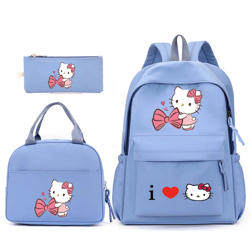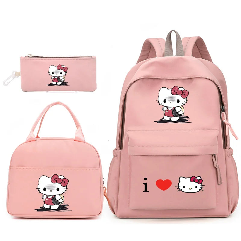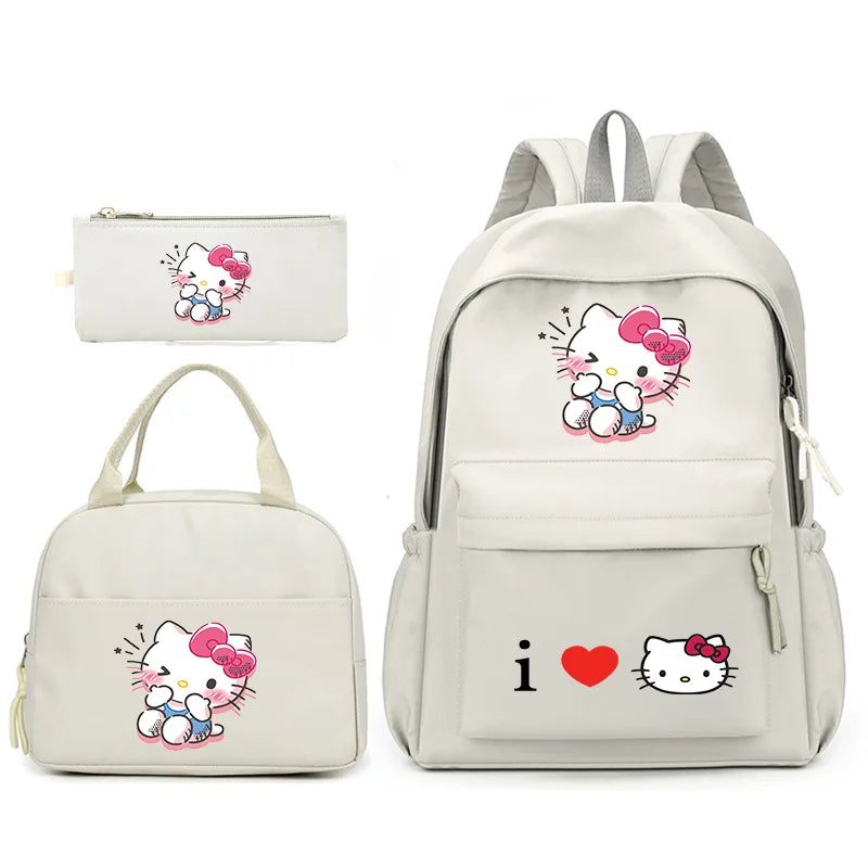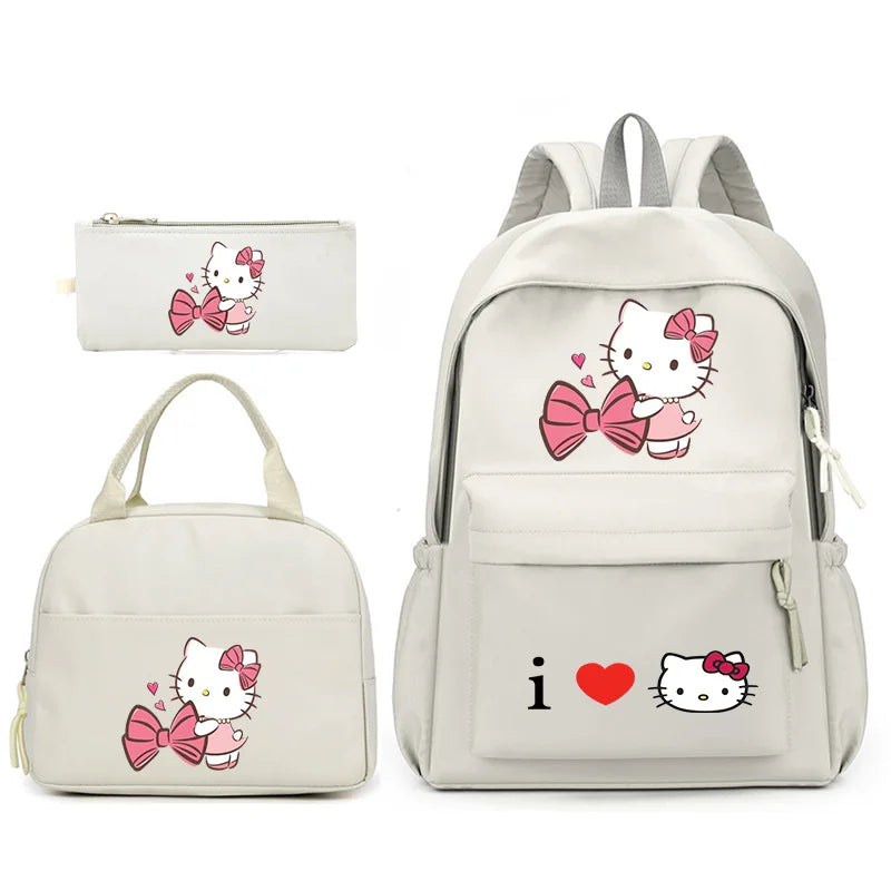 3pcs/Set Hello Kitty Backpack with Lunch Bag for Teenagers Student School Bags Casual Comfortable Travel Set