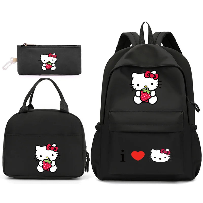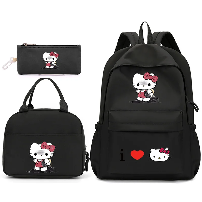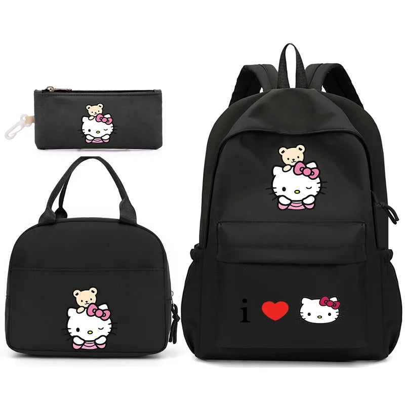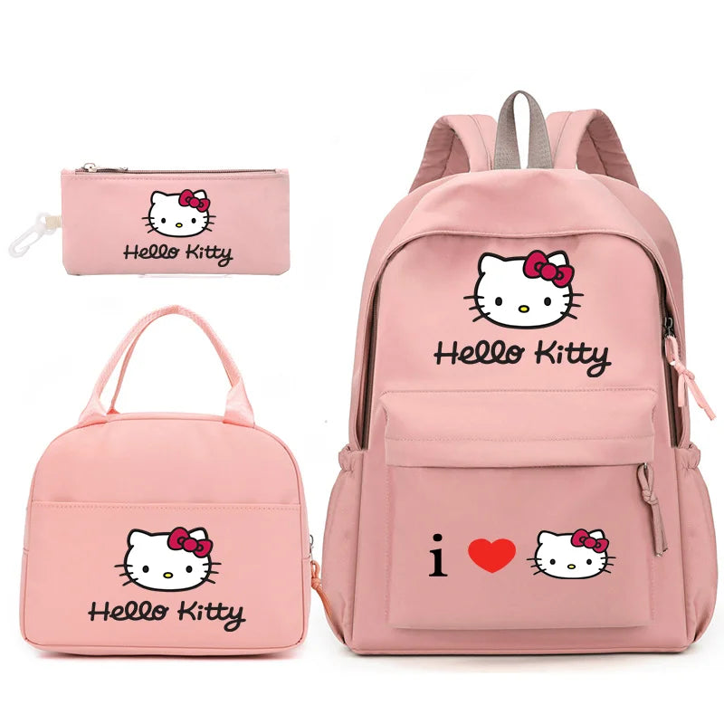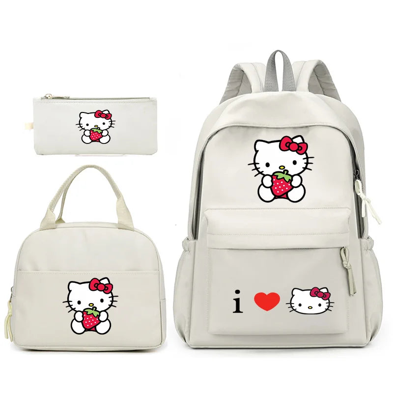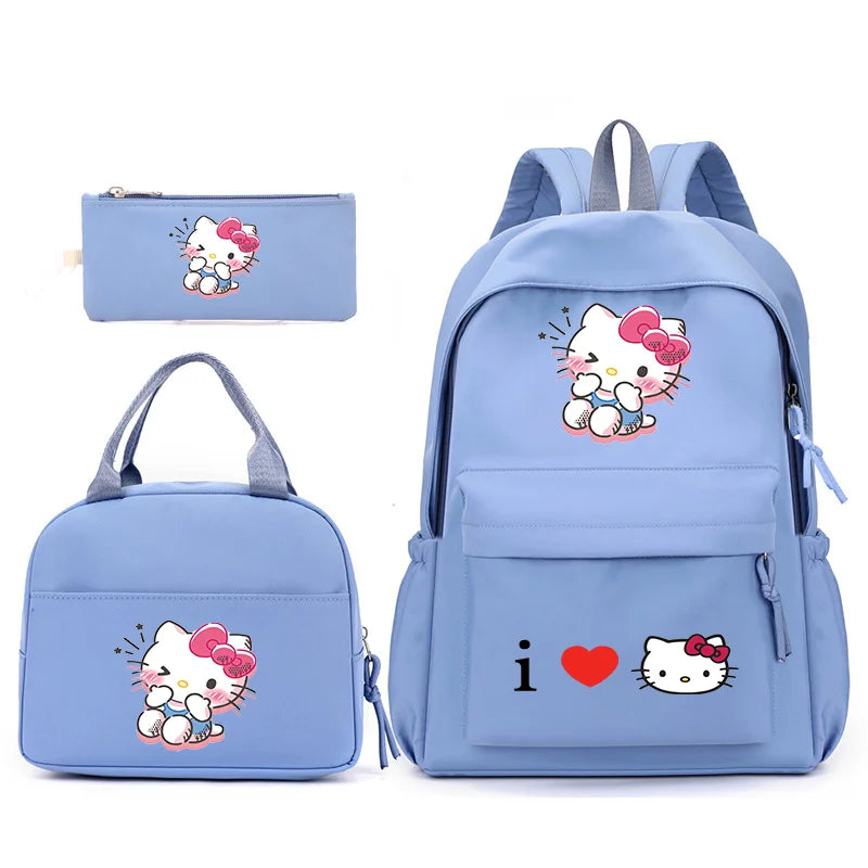 3pcs/Set Hello Kitty Backpack with Lunch Bag for Teenagers Student School Bags Casual Comfortable Travel Set