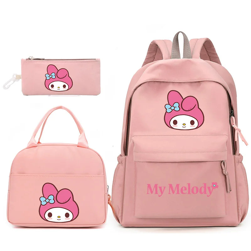 3pcs/Set My Melody Backpack with Lunch Bag for Teenagers Student School Bags Casual Comfortable Travel Set
