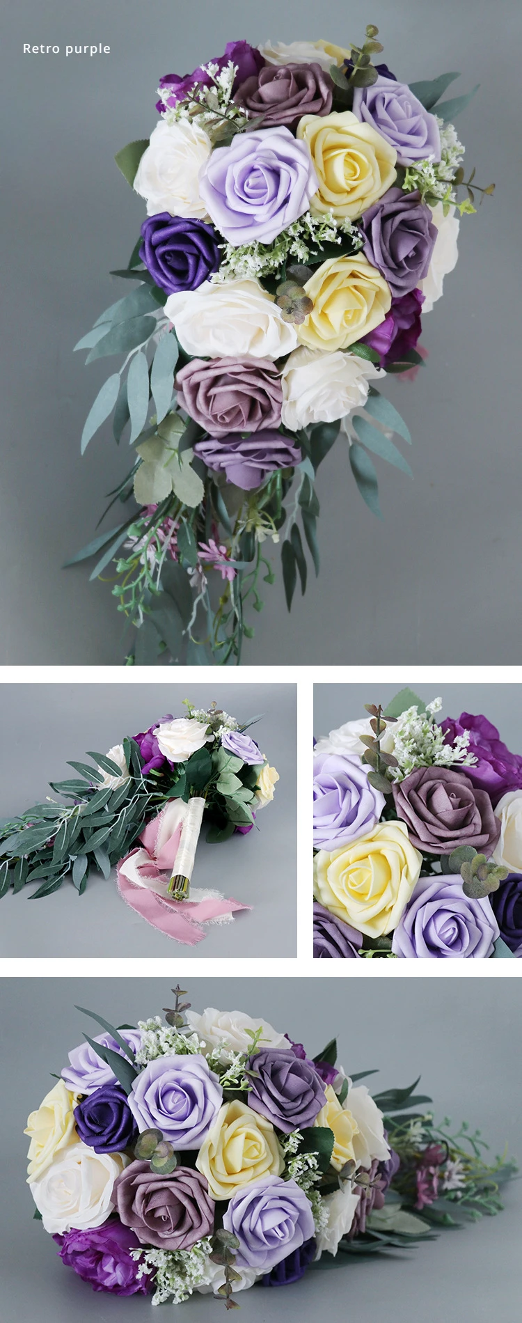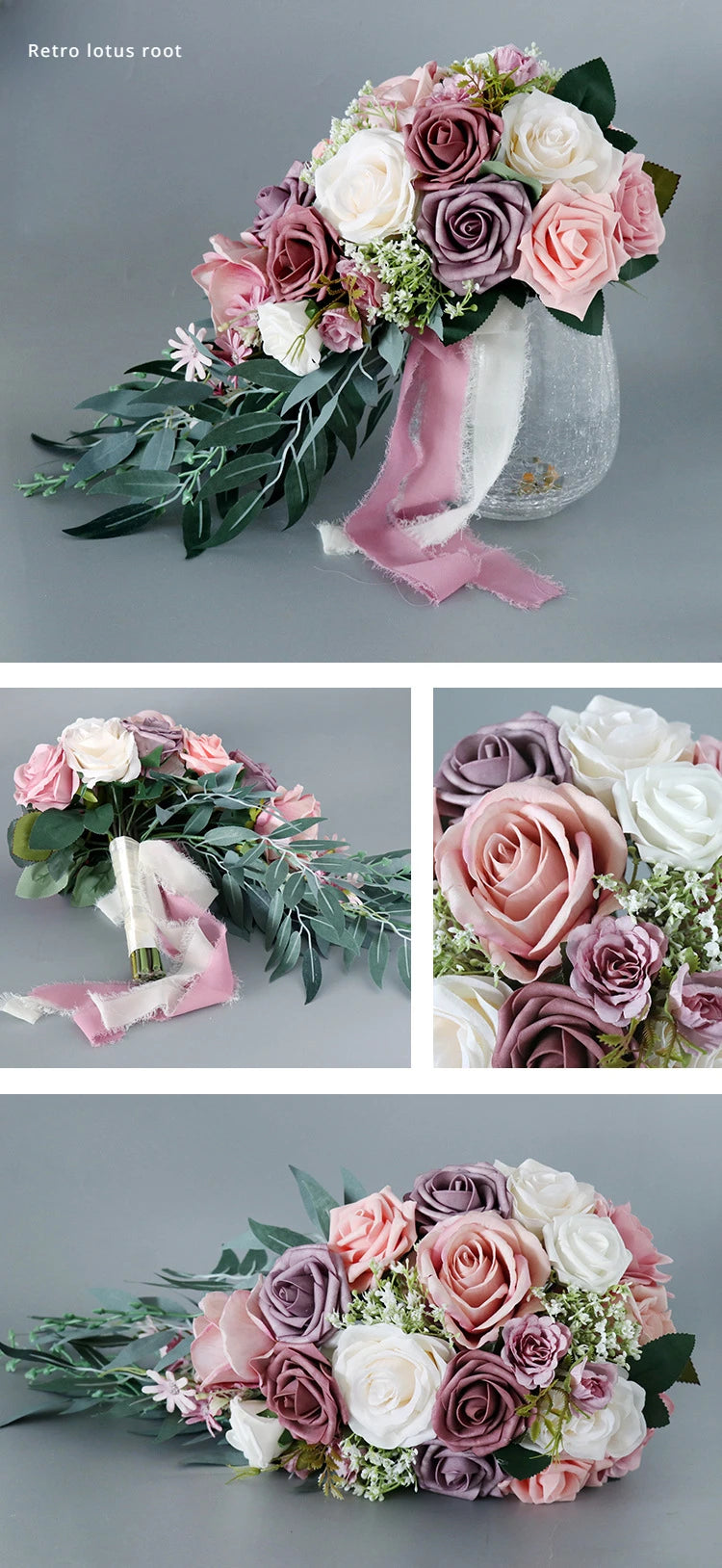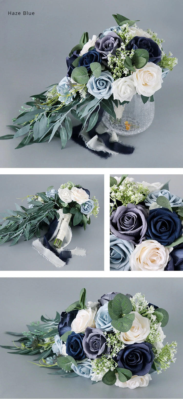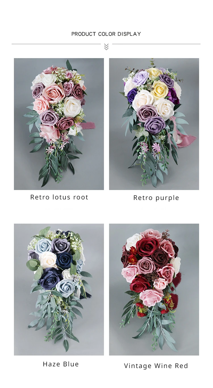 45X22CM Artificial Flower Bundle Bride Water Drops Holding Flowers Wedding Supplies Rose Silk Flower Wedding Photography Props