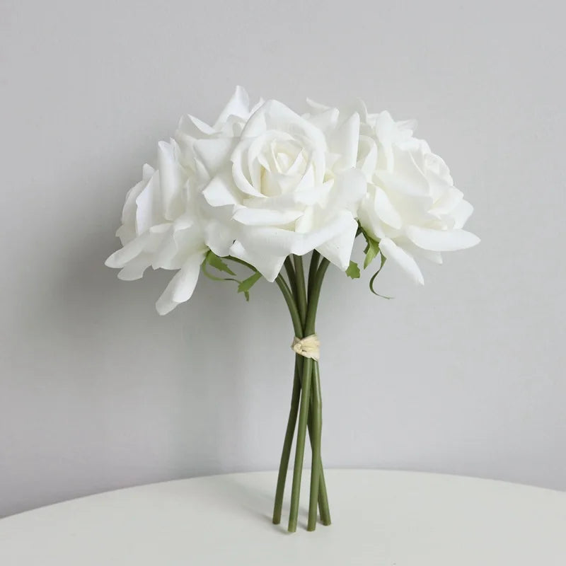 5Heads Curled Edge Rose Bouquet Real Touch Artificial Flowers Rose Wedding Bridal Bouquet Party Festival Home Decor Fake Flowers