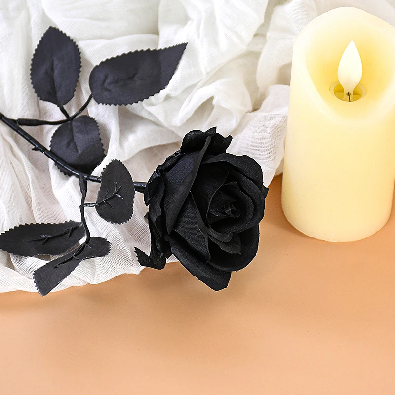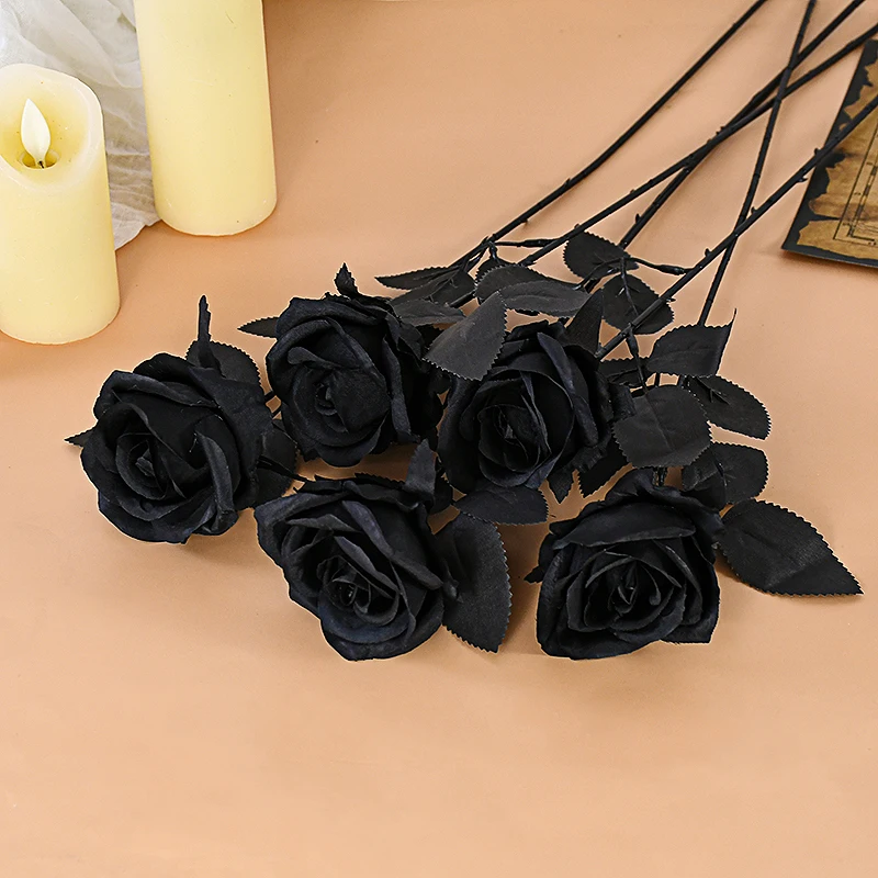 5Pcs Silk Black Rose Artificial Flower Fake Flower Bouquet For Wedding Party Decoration Home Decoration Garden Accessories
