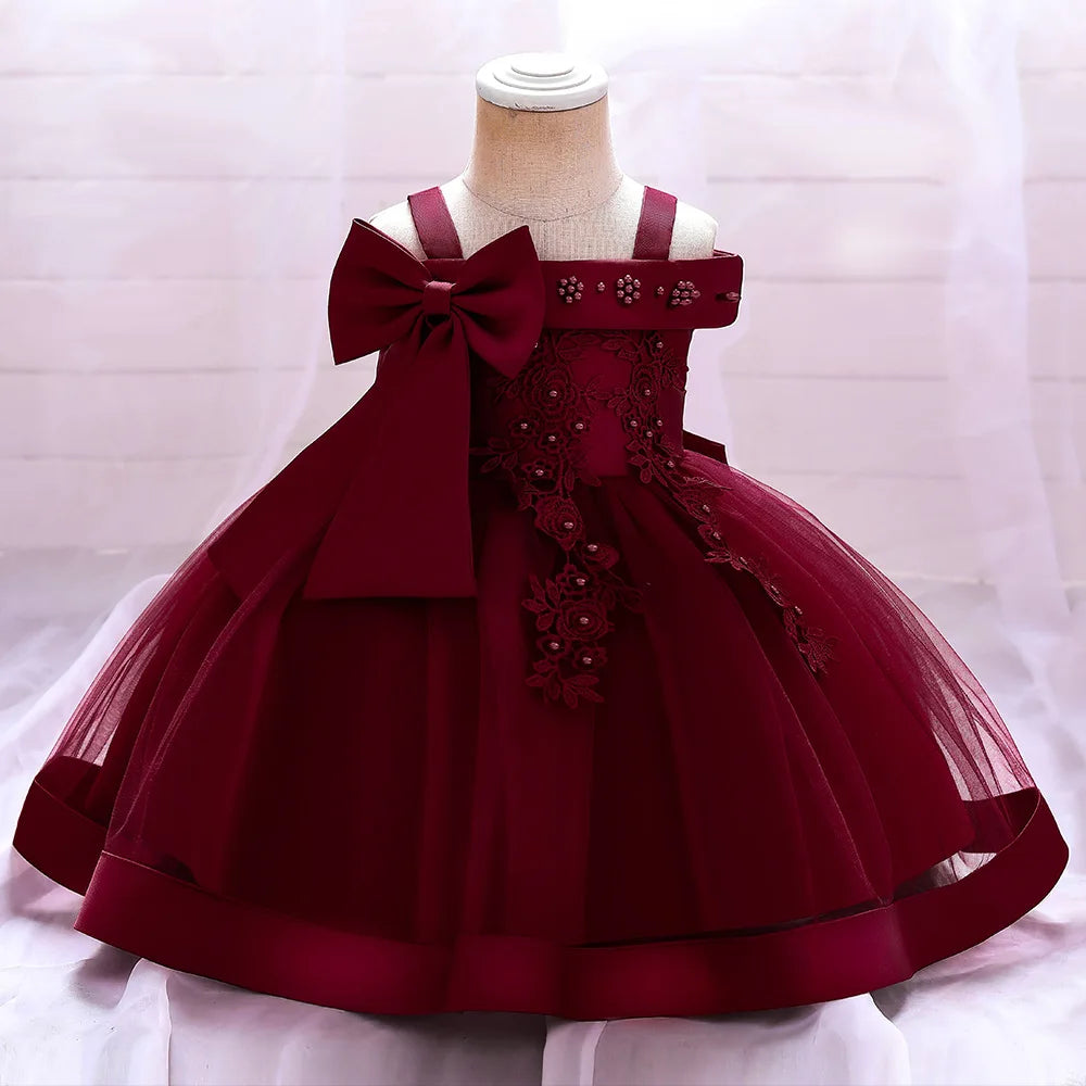6 12 24 36 Months Baby Girls Dress Big Bow Wedding Party Elegant Little Princess Dress Kids Birthday Present Christmas Vestidos
