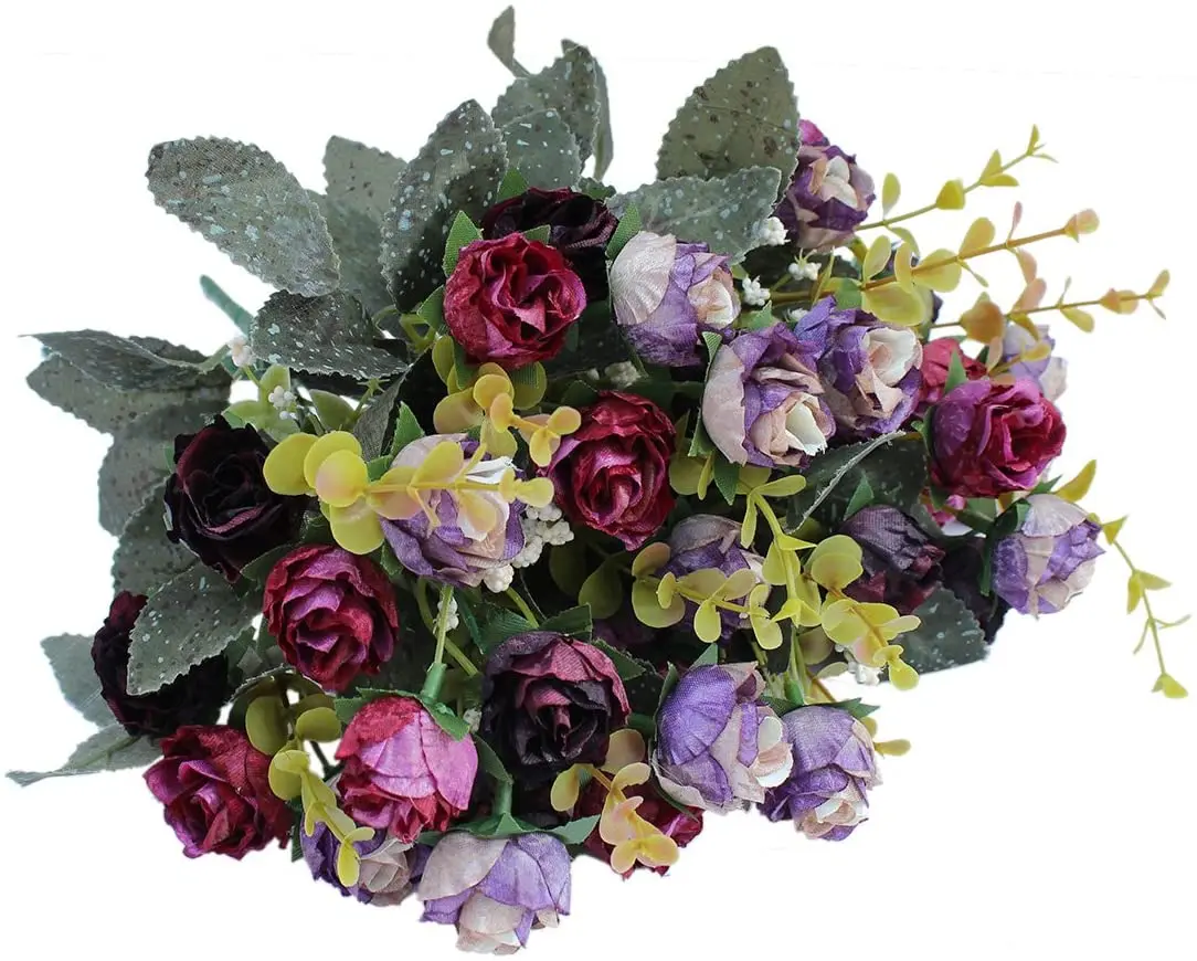 7 Branch 21 Heads Artificial Flowers Bouquet Mini Rose for Bridal Shower Wedding Floral Birthday Party Home Office Decoration
