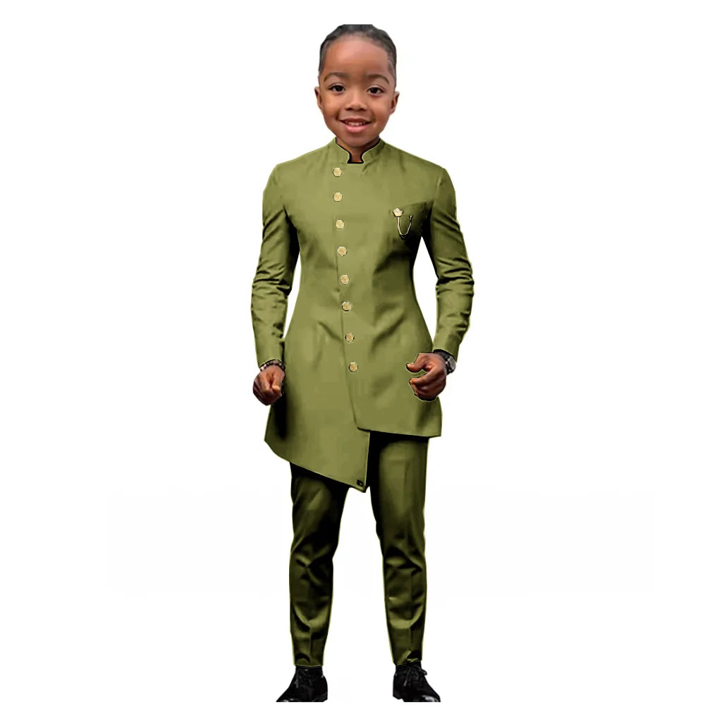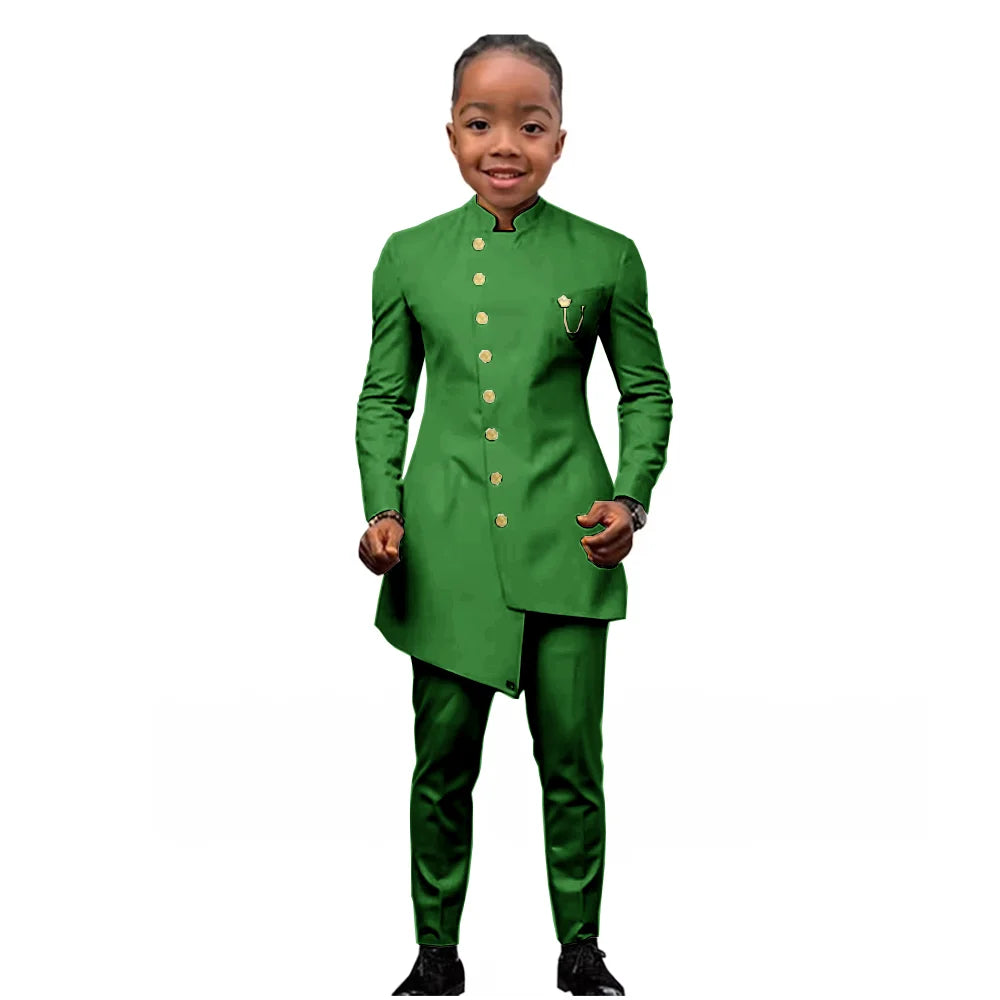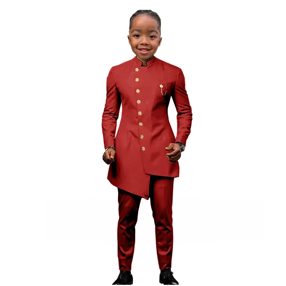 African Boys Suit 2 Piece Set (Jacket+Pant) Long Blazer for Kids Wedding Tuxedo Custom Size Boys Blazer