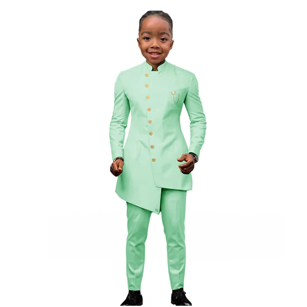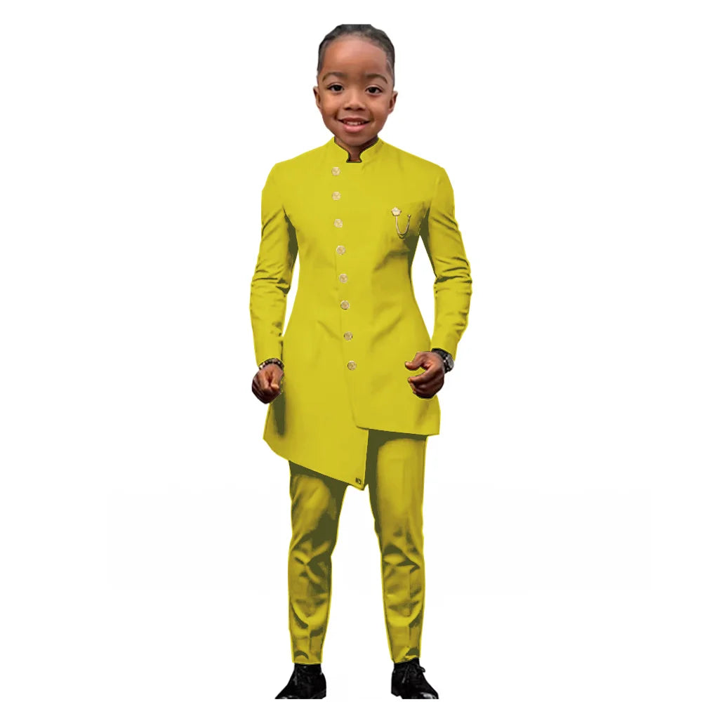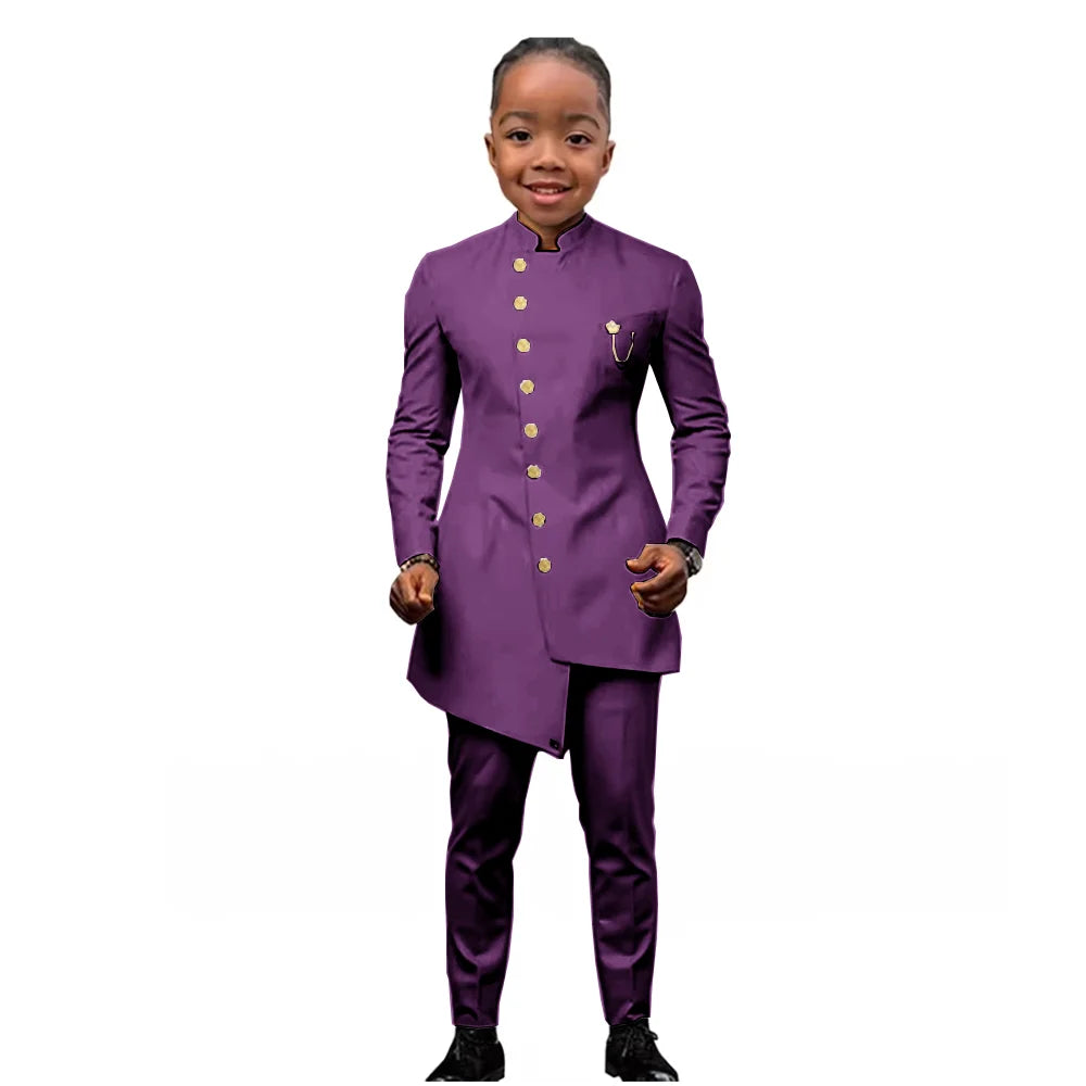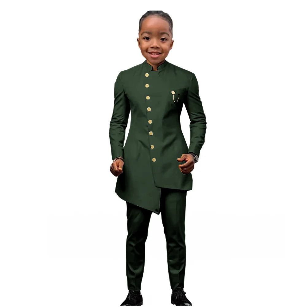 African Boys Suit 2 Piece Set (Jacket+Pant) Long Blazer for Kids Wedding Tuxedo Custom Size Boys Blazer