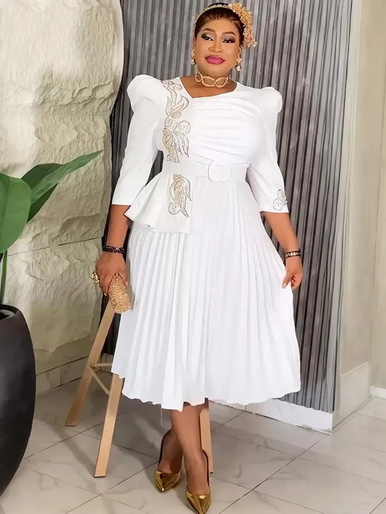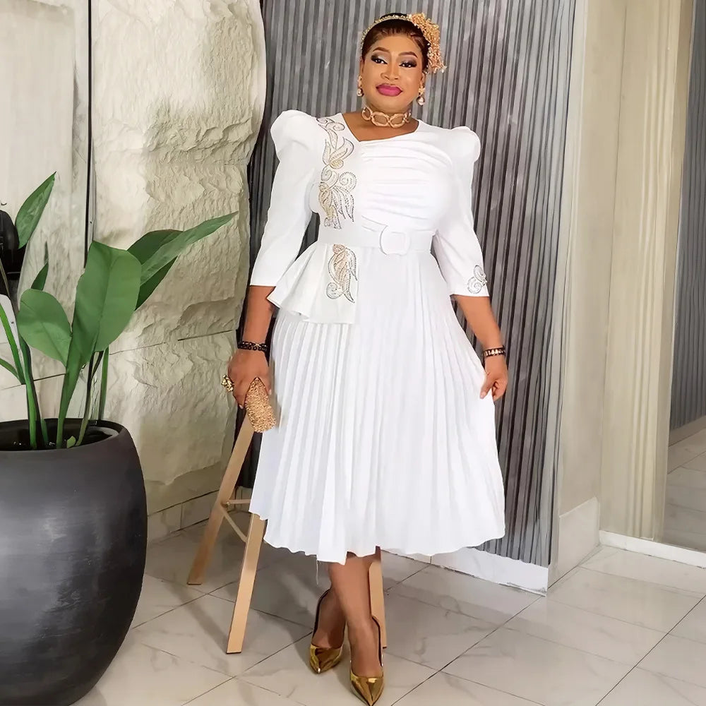 African Dresses For Women Elegant 2025 Dashiki Autumn Summer Midi Dress Ladies Traditional African Clothing Fairy Dreaes