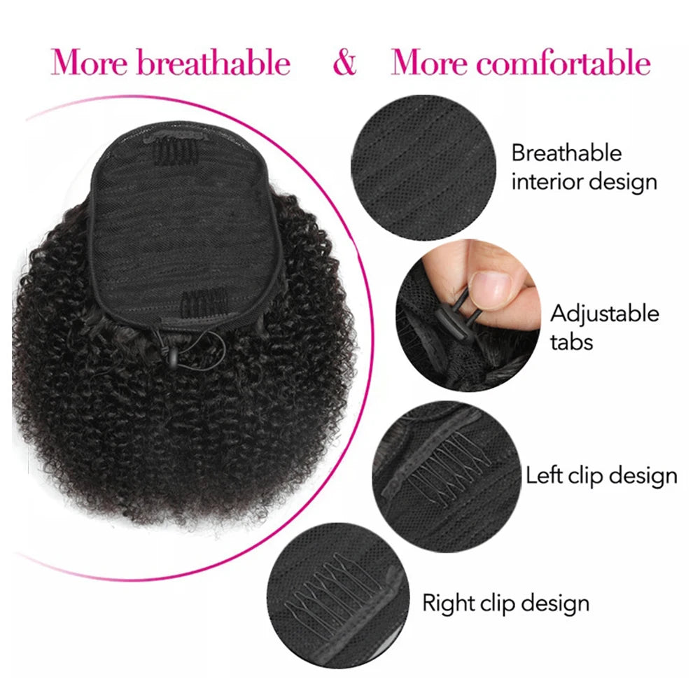 Afro Kinky Curly Hair Ponytail Extensions Clip in Drawstring Ponytail Human Hair Extensions Mongolian Kinky curly Hair Pieces
