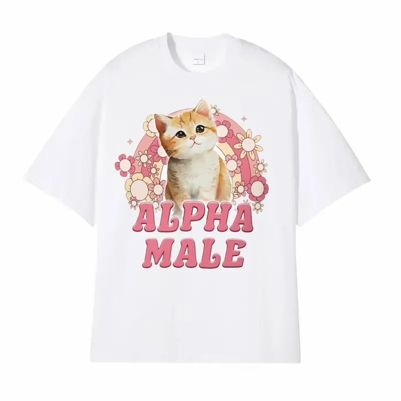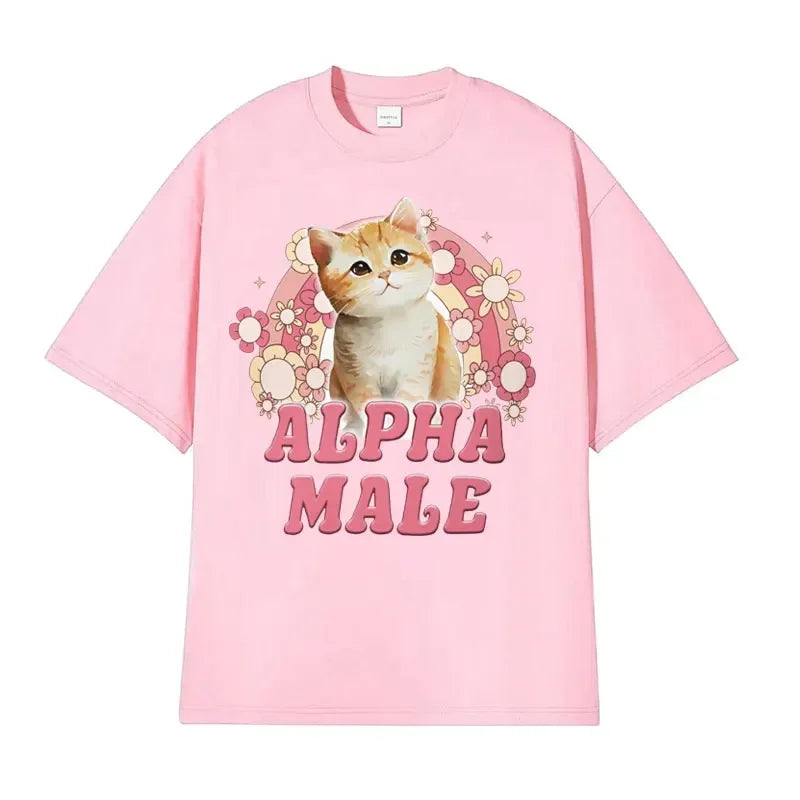 Alpha Male Cute Kitten Rainbow T Shirt Men Women Funny Cat Meme Graphic T Shirts Fashion Vintage Short Sleeve T-shirt Streetwear
