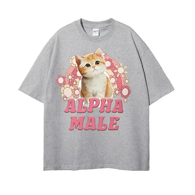 Alpha Male Cute Kitten Rainbow T Shirt Men Women Funny Cat Meme Graphic T Shirts Fashion Vintage Short Sleeve T-shirt Streetwear