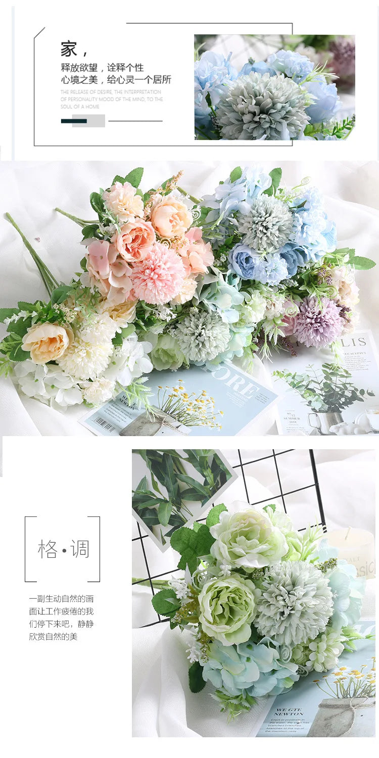 Artificial Flowers Silk Peony For Vase Bride Bouquet Wedding Home Room Table Decoration Fake Floral Hydrangea Gifts