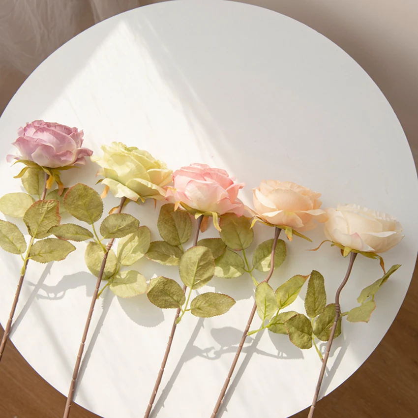 Artificialflower Caramel Rose High Quality Garden Courtyard Wedding Bride Bouquet Wreath Home Table Vase Festival Diy Gift Decor