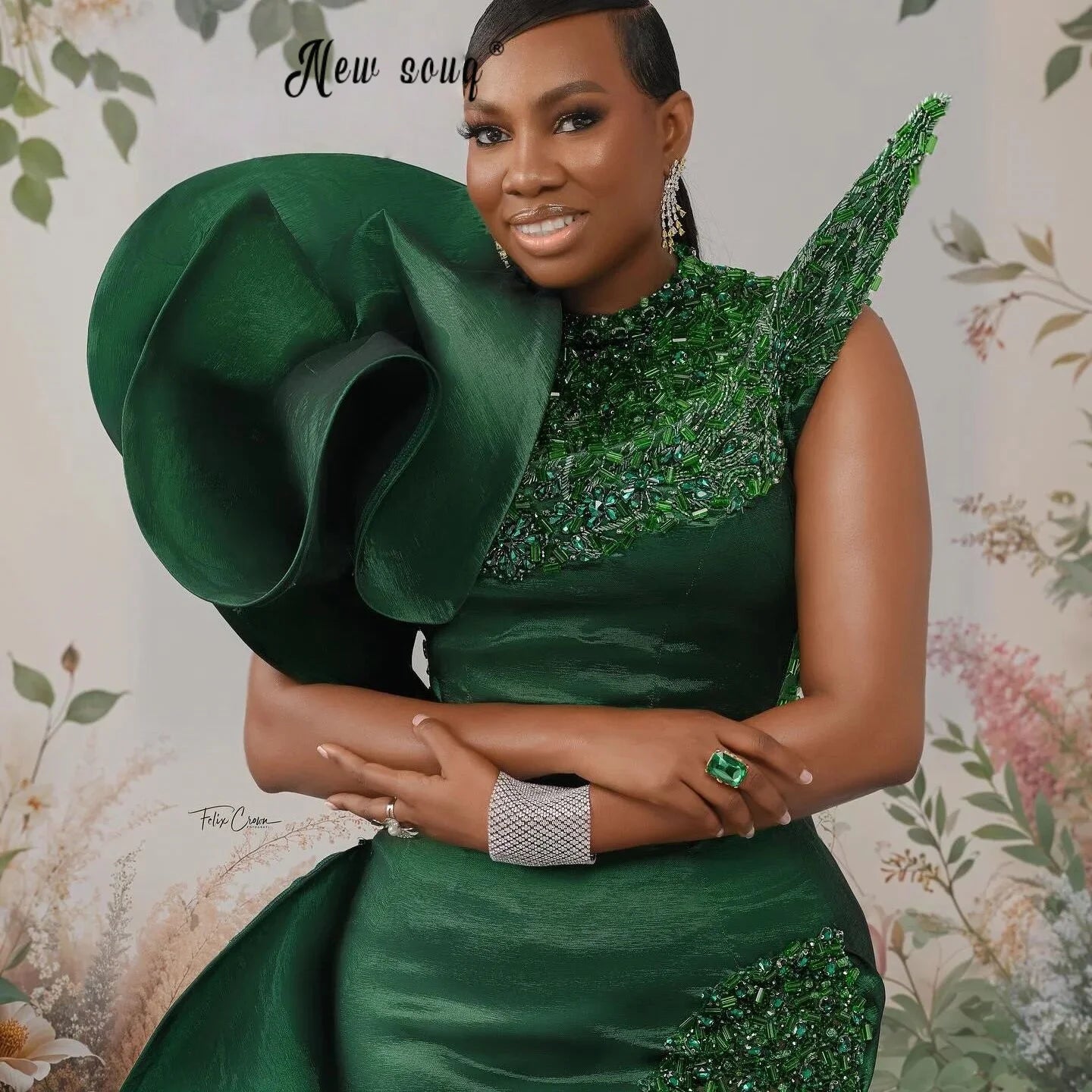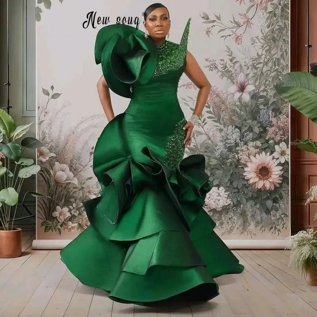 Aso Rbi Emerald Green Prom Dresses Mermaid One Shoulder Second Reception Gowns Plus Size Satin Wedding Guest Gown Customized New