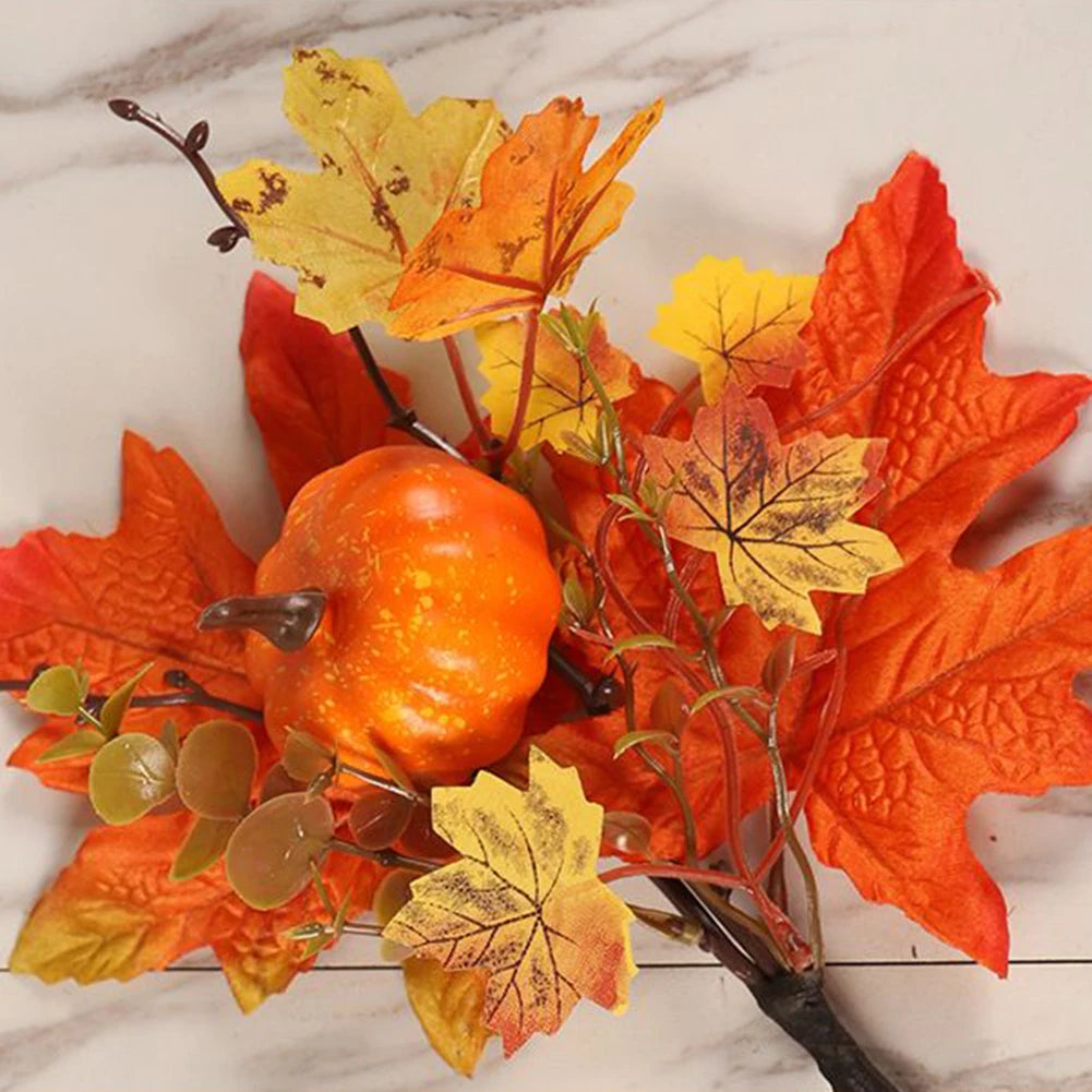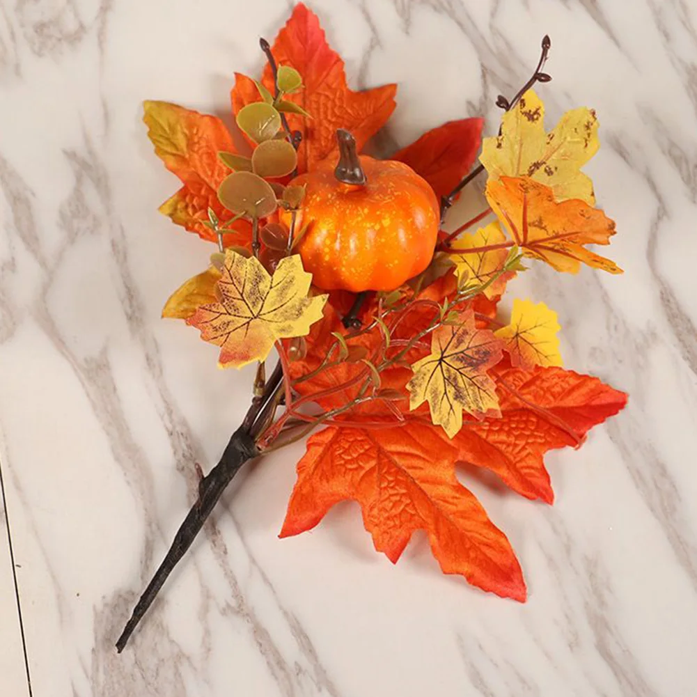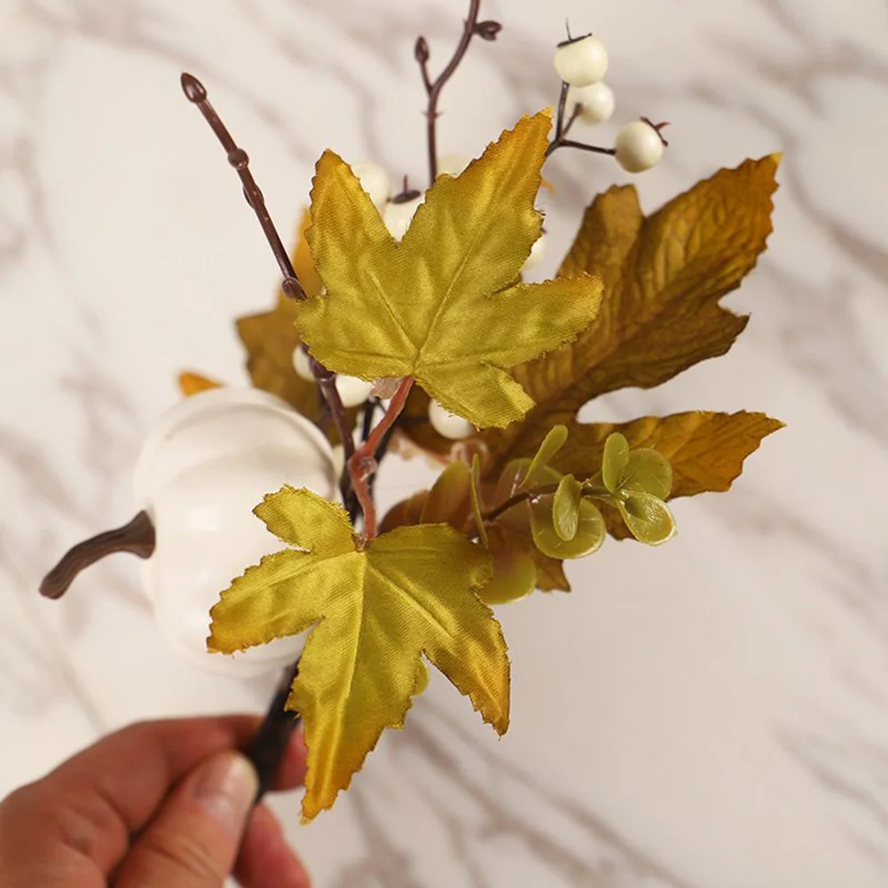 Autumn Fall Maple Leaves Branch Foam Artificial Fall Fake Maple Leaves Stems Plant For Outdoor Wedding Halloween Home Decoration