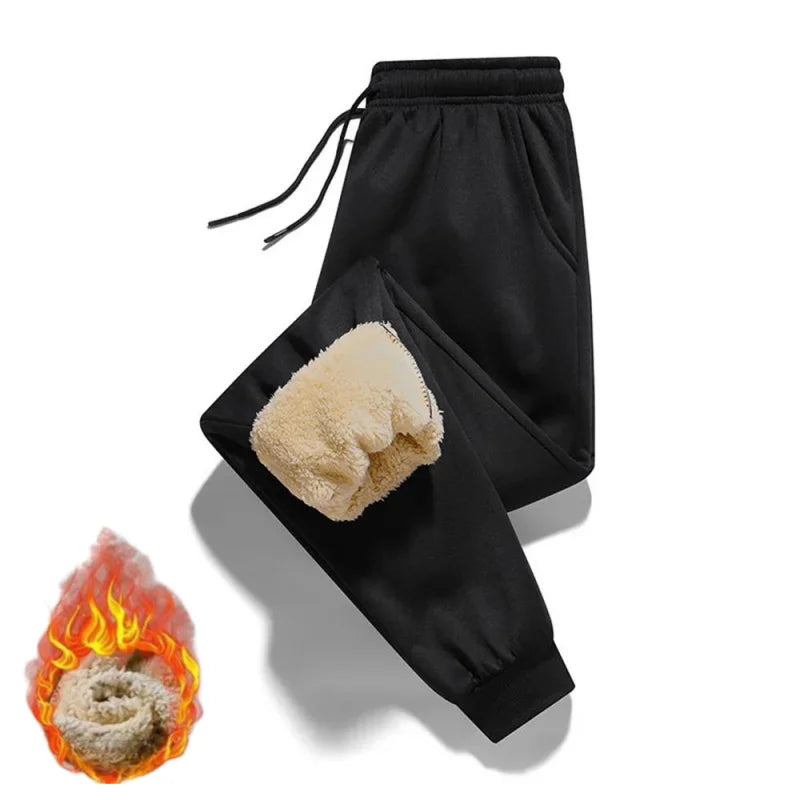 Autumn Winter Men's Lambswool Sweatpants Fashion Wide Loose Casual Men Fleece Thicken Warmer Sports Long Pants Joggers Trousers