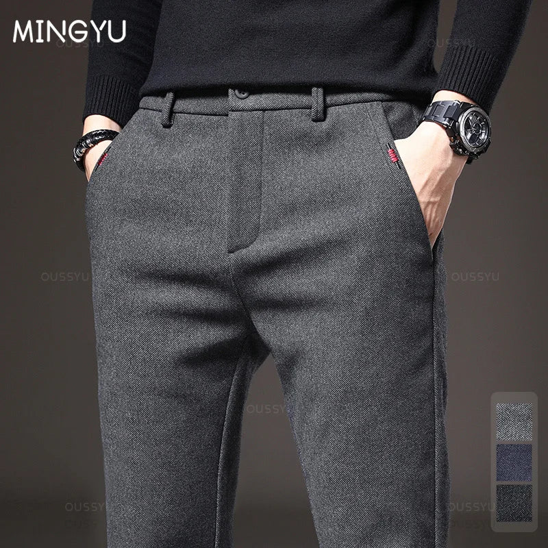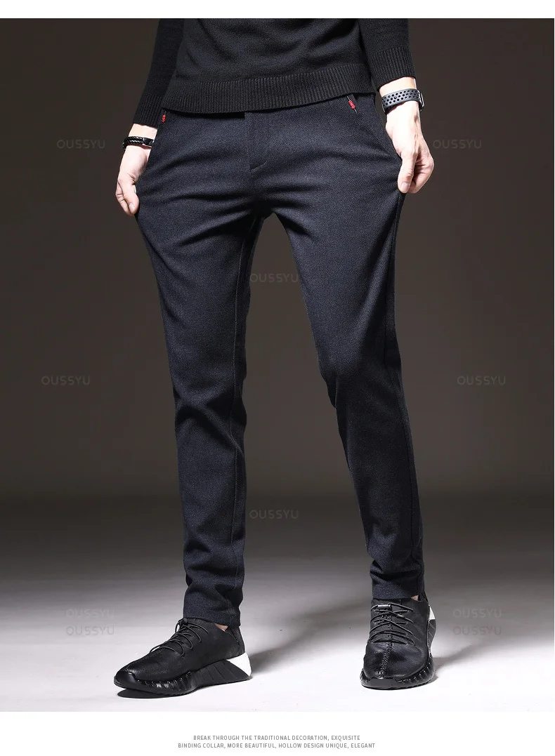 Autumn Winter New Classic Casual Pants Men Thick Business Korea Slim Fit Stretch Gray Blue Black Brushed Fabric Trousers Male
