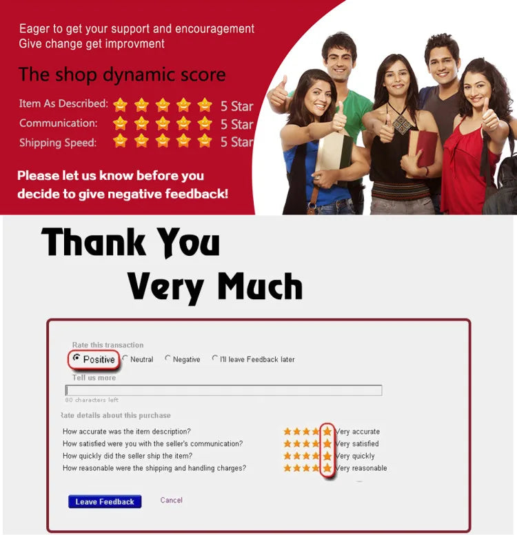 please kindly take a minutes to leave a positive feedback with 5 stars , we will gladly do the same for you.