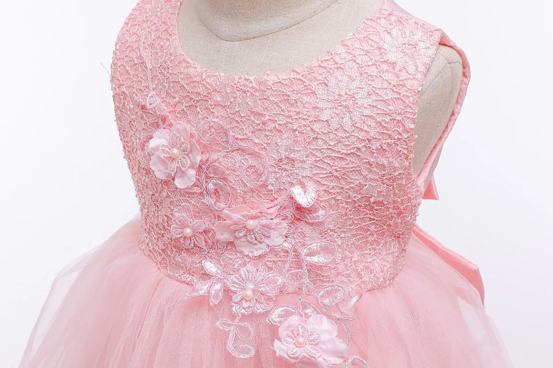 Baby First Baptism Dresses Lace Long Tailing dress Girls Elegant Embroidery Wedding Party Gown Bridesmaid Kids Clothes 3 6 month