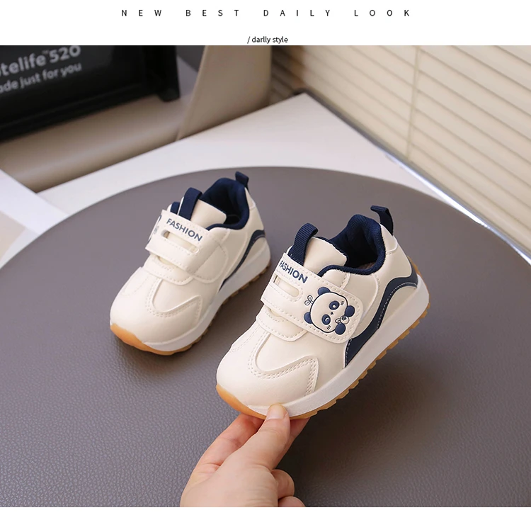 Baby walking shoes with leather surface for autumn and winter, new baby soft soled breathable sports shoes for boys and girls